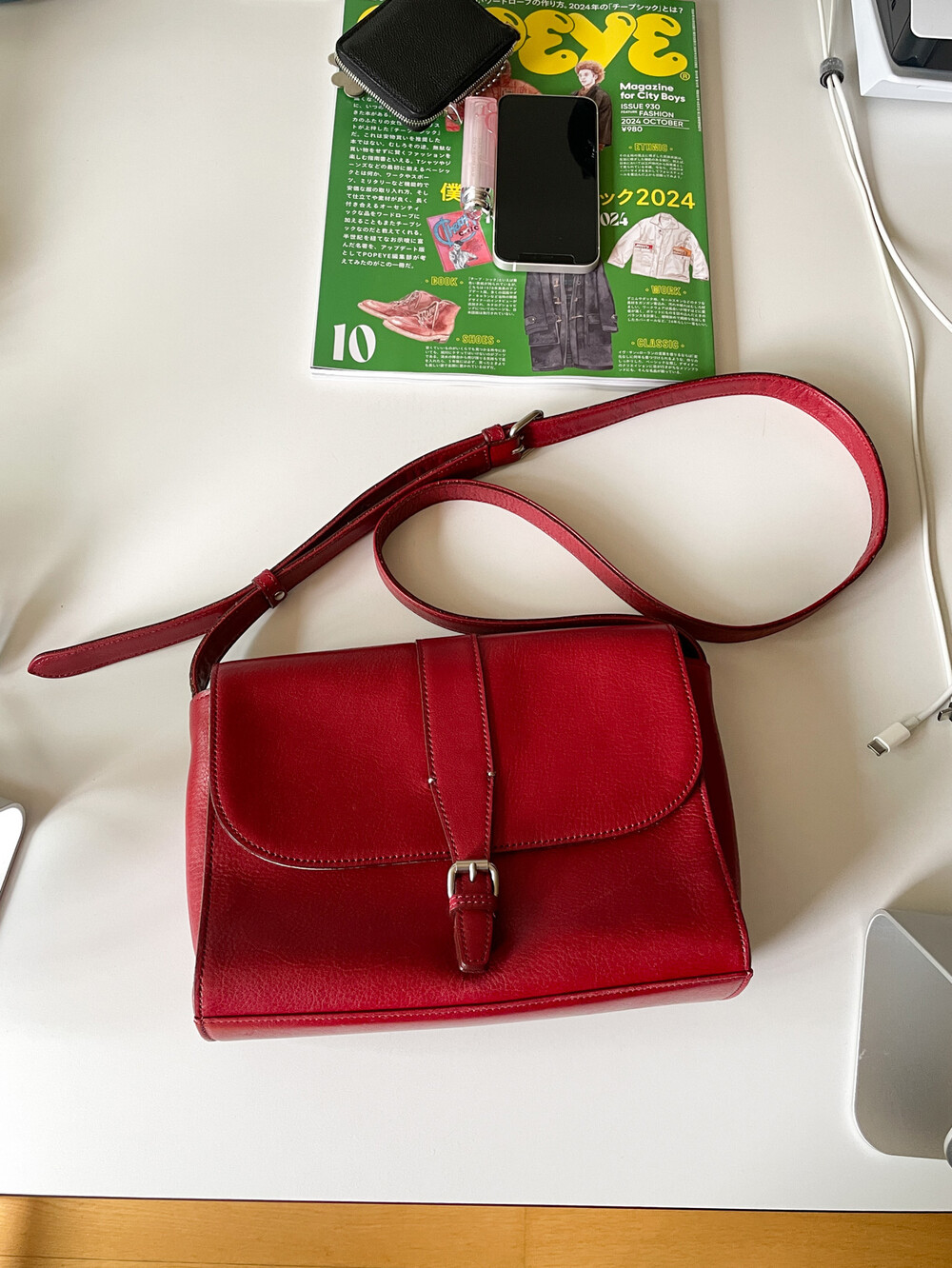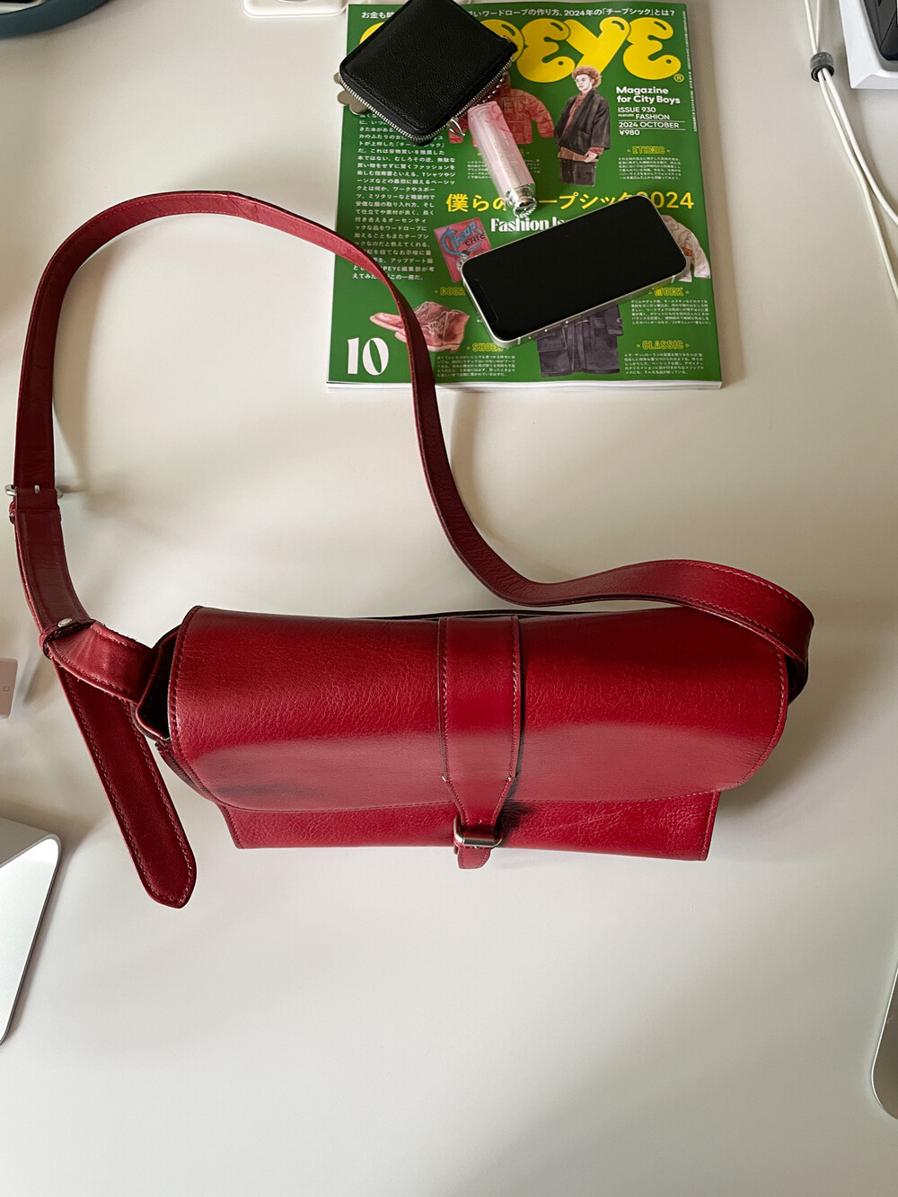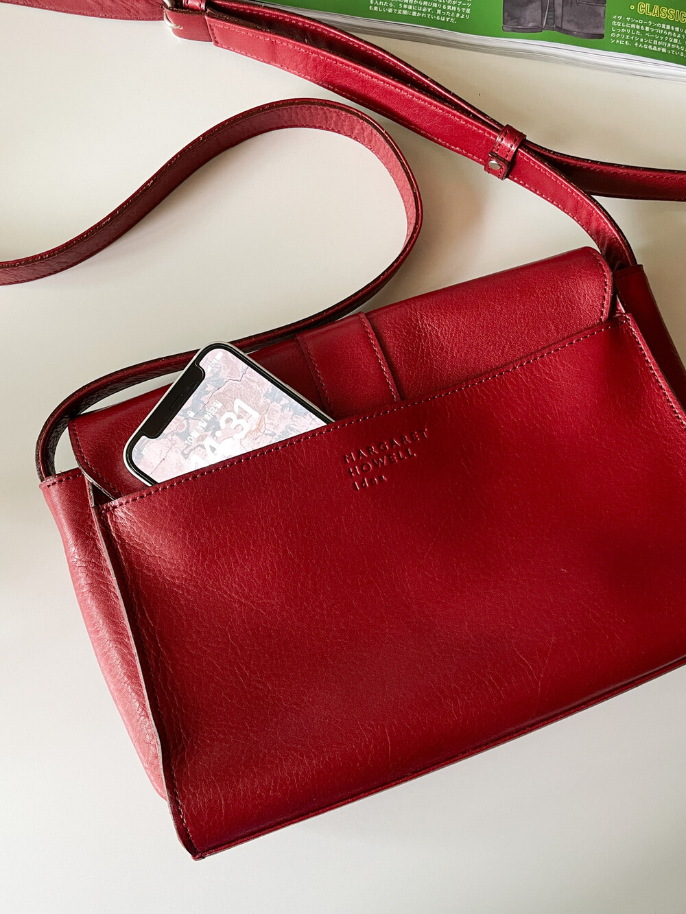 MARGARET HOWELL - Leather Shoulder Bag (Deep Red)