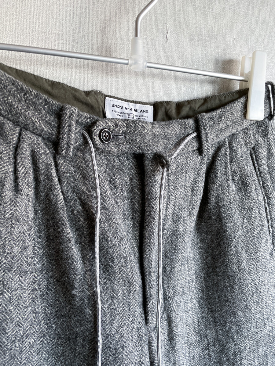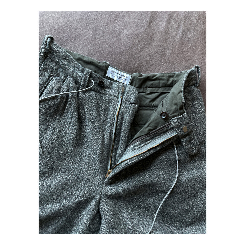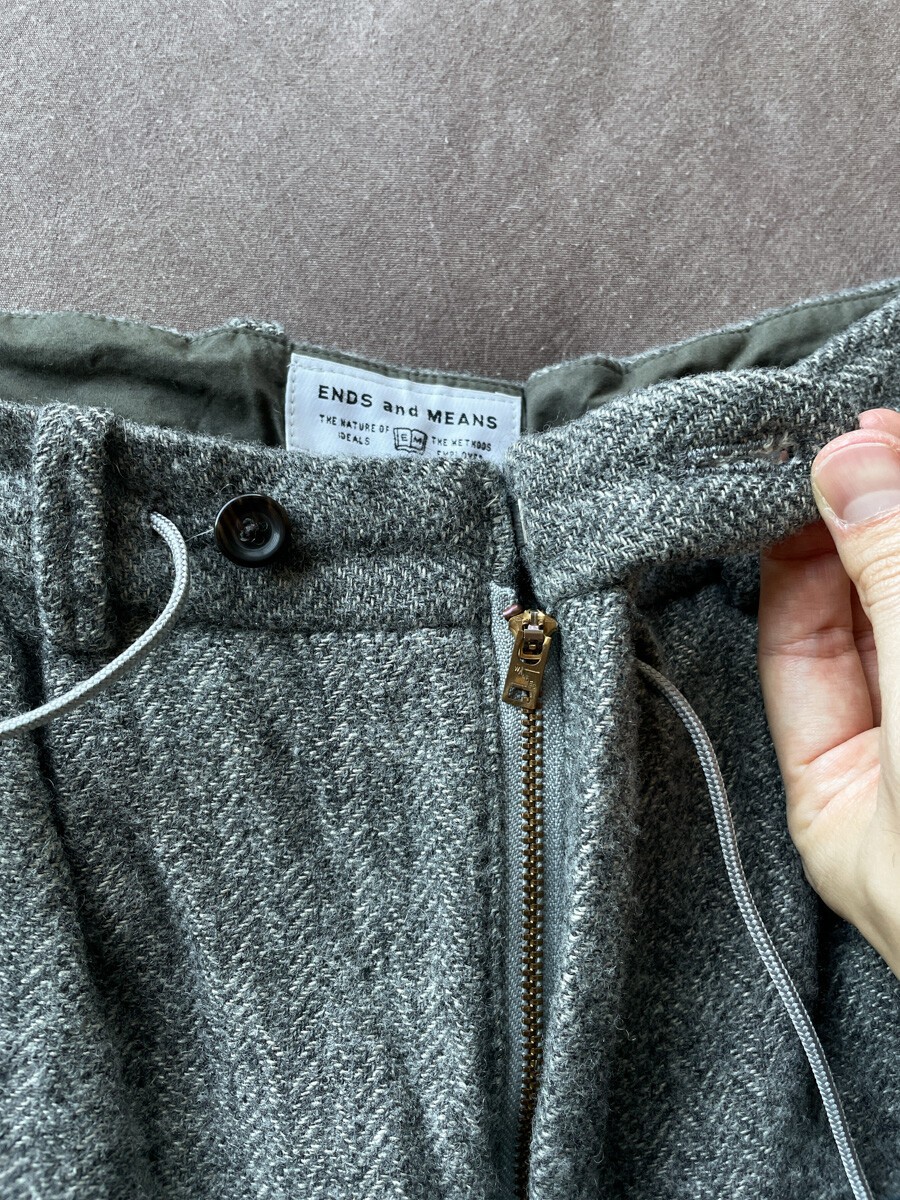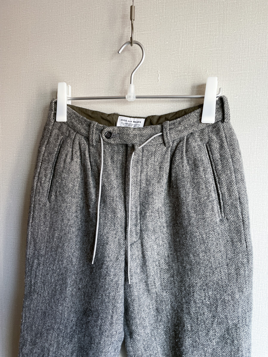 ENDS AND MEANS - Grandpa 2Tuck Wool Trousers (Mix Gray / Herringbone)
