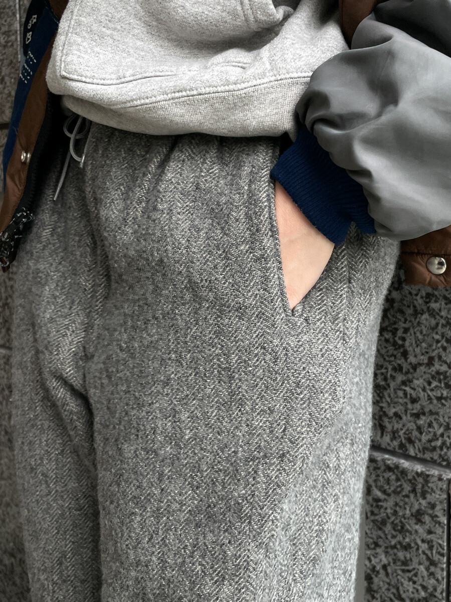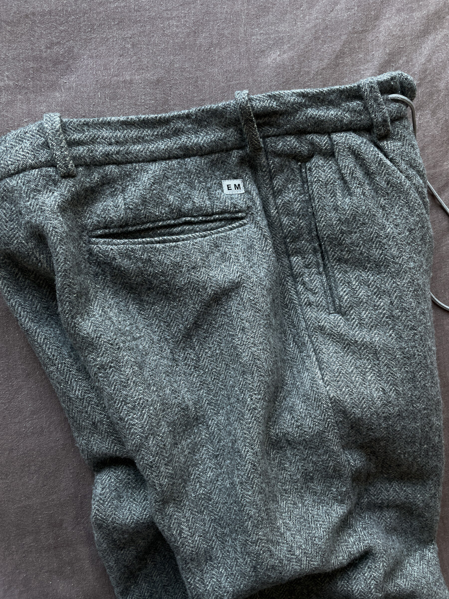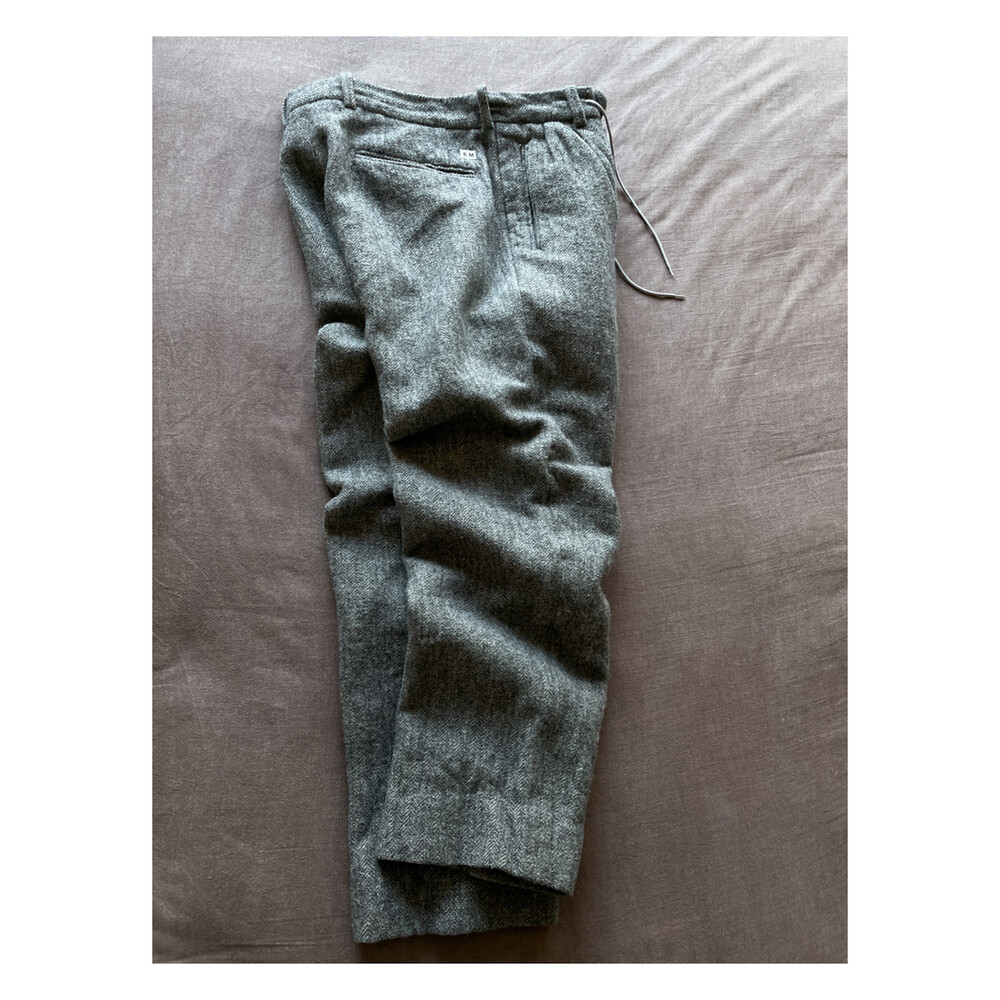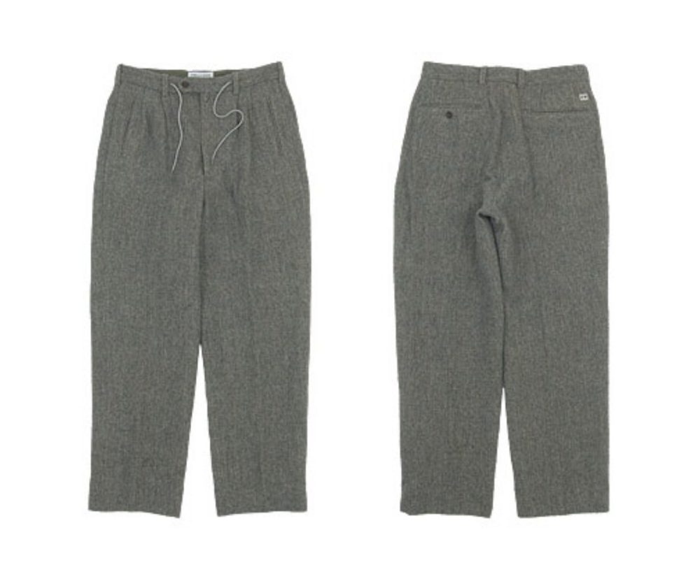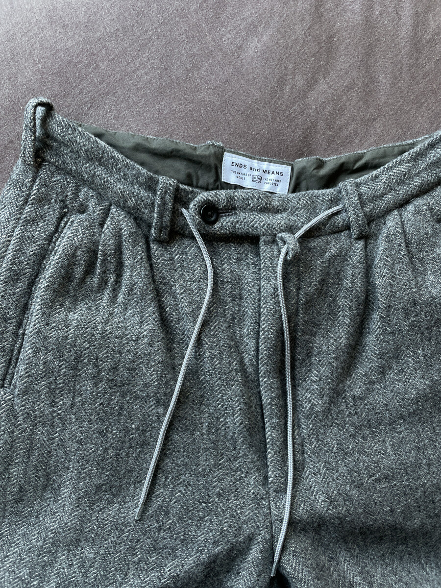 ENDS AND MEANS - Grandpa 2Tuck Wool Trousers (Mix Gray / Herringbone)