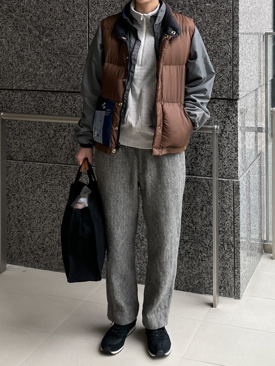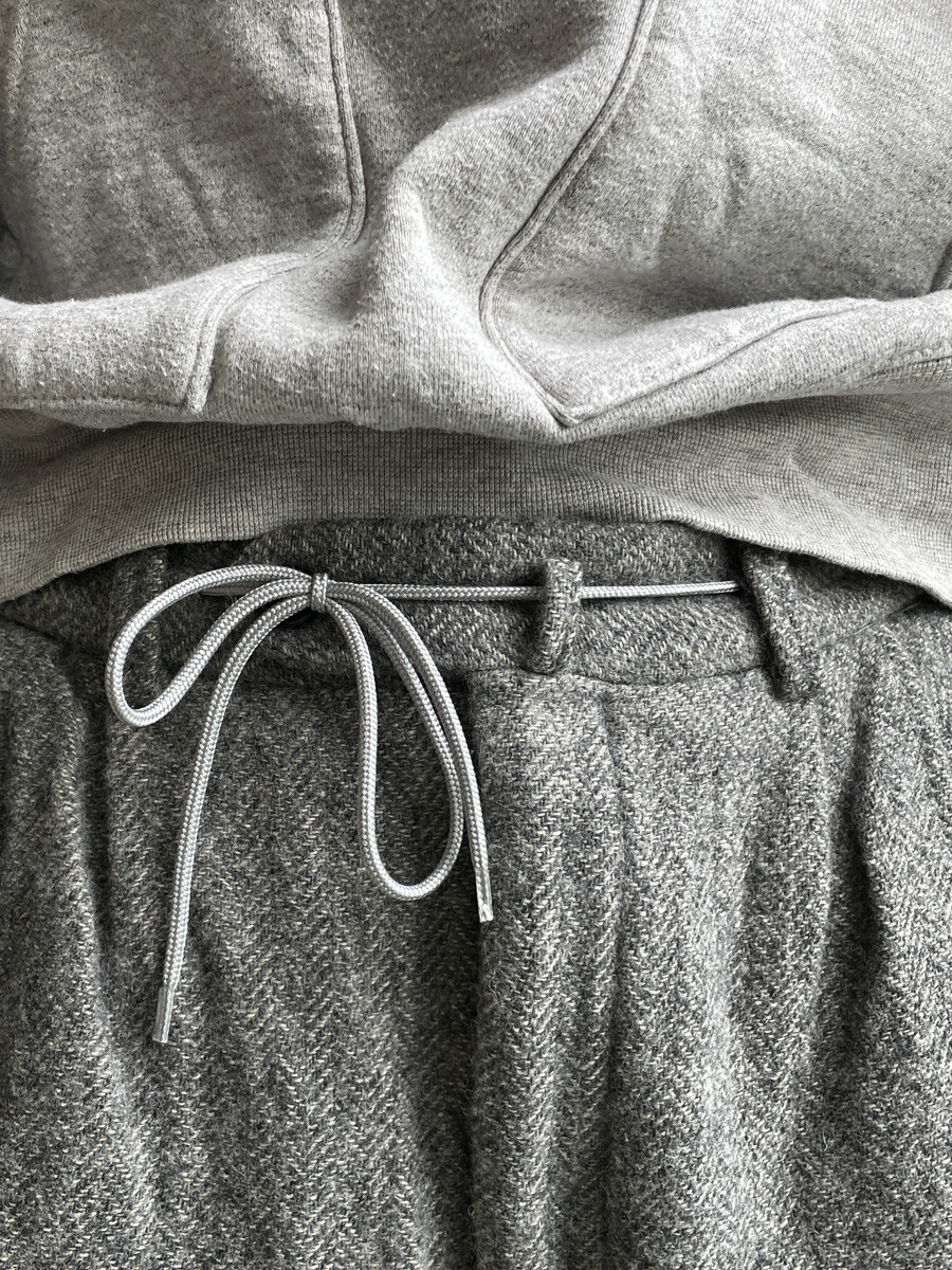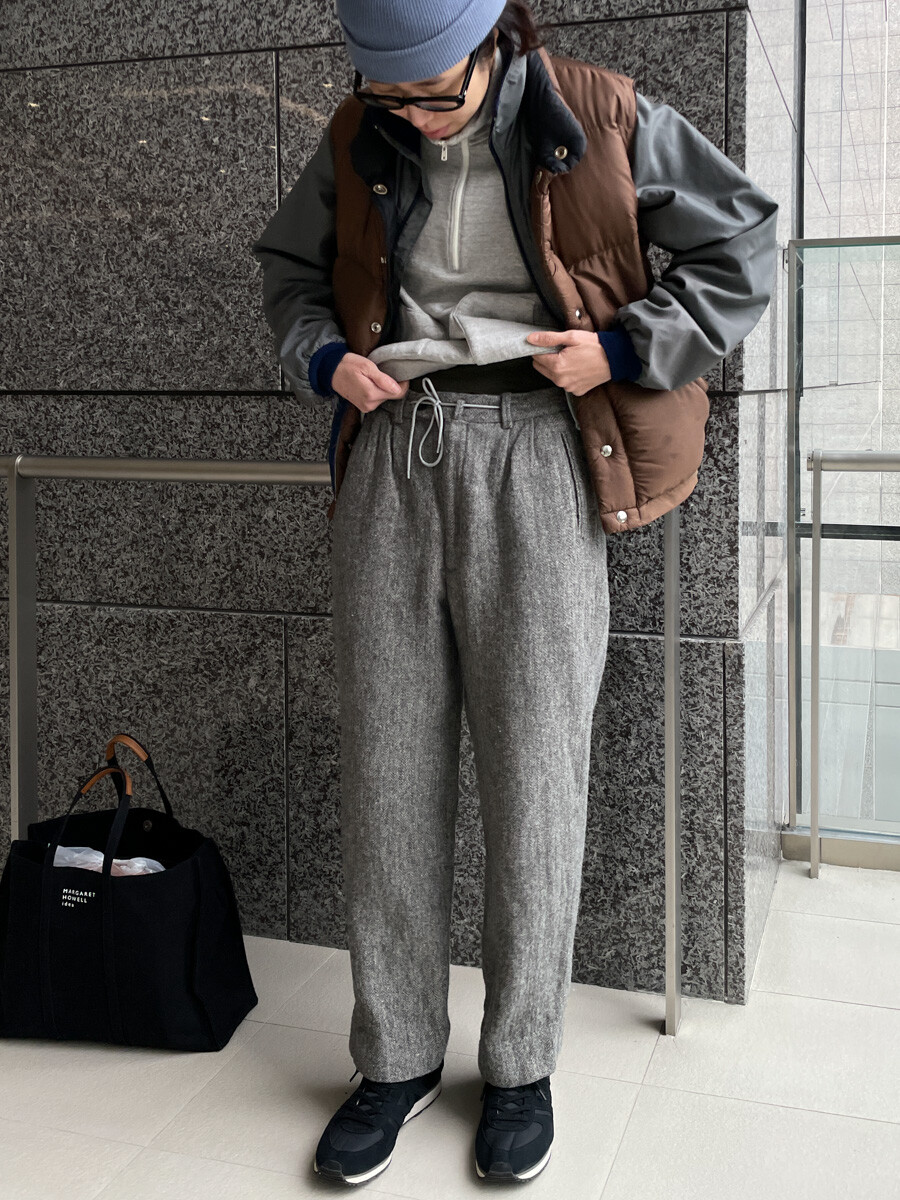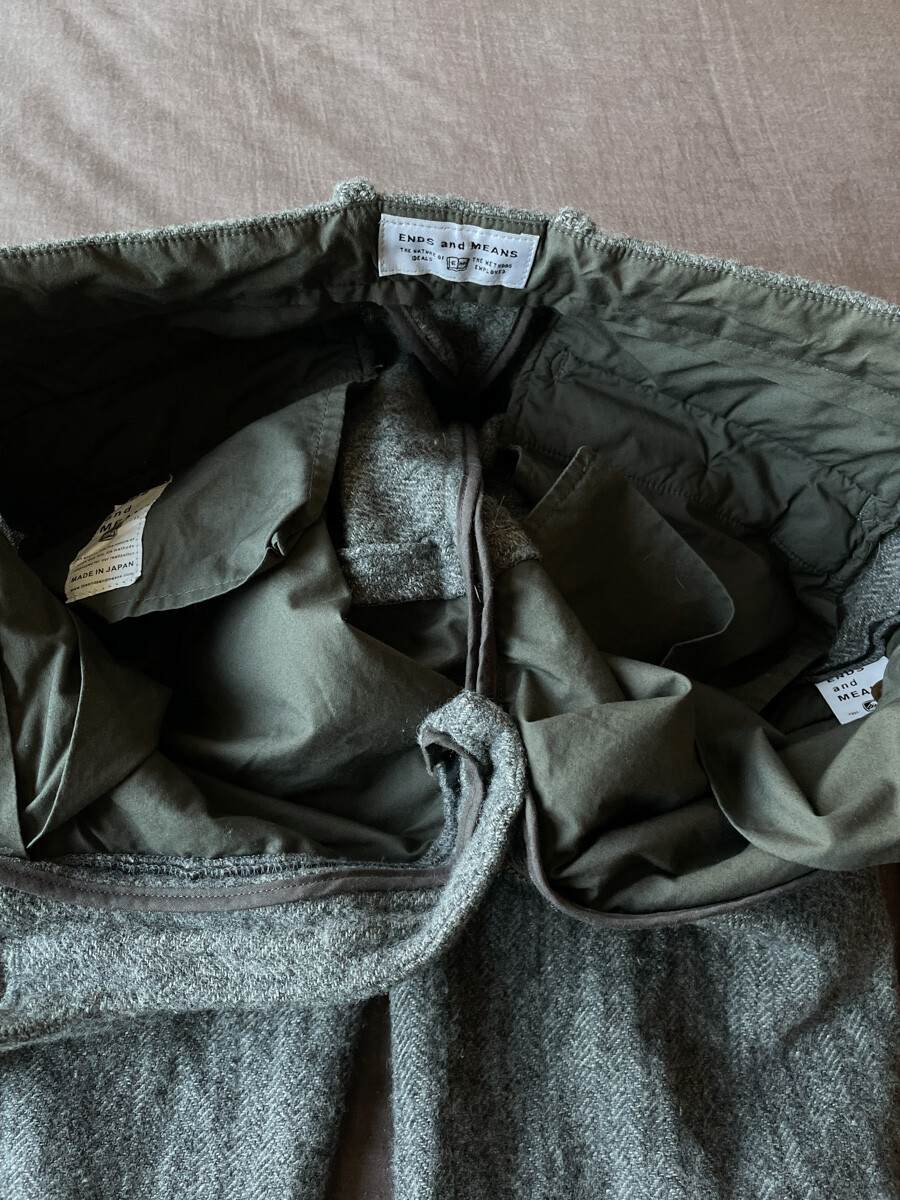 ENDS AND MEANS - Grandpa 2Tuck Wool Trousers (Mix Gray / Herringbone)