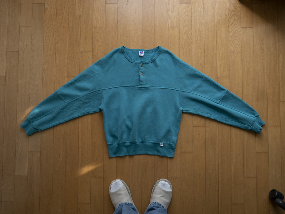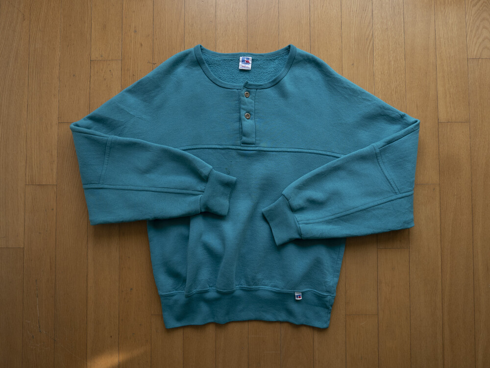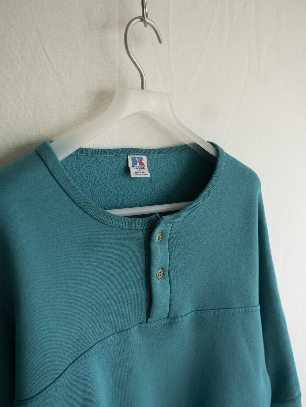 1990S RUSSELL ATHLETIC - Henry Neck Sweatshirt (Teal Green)