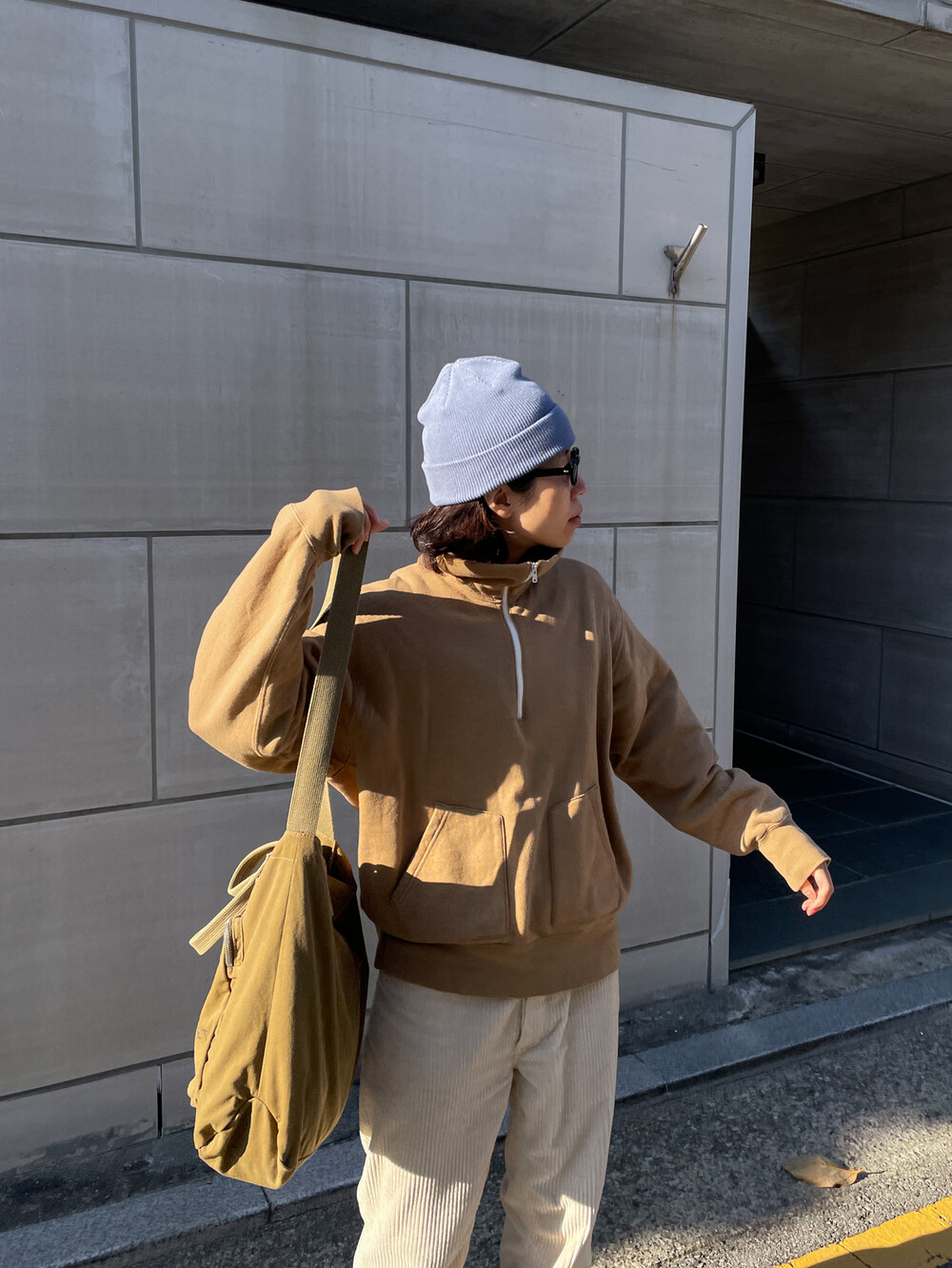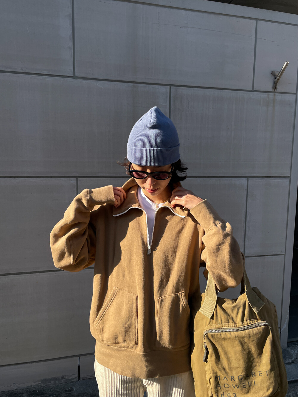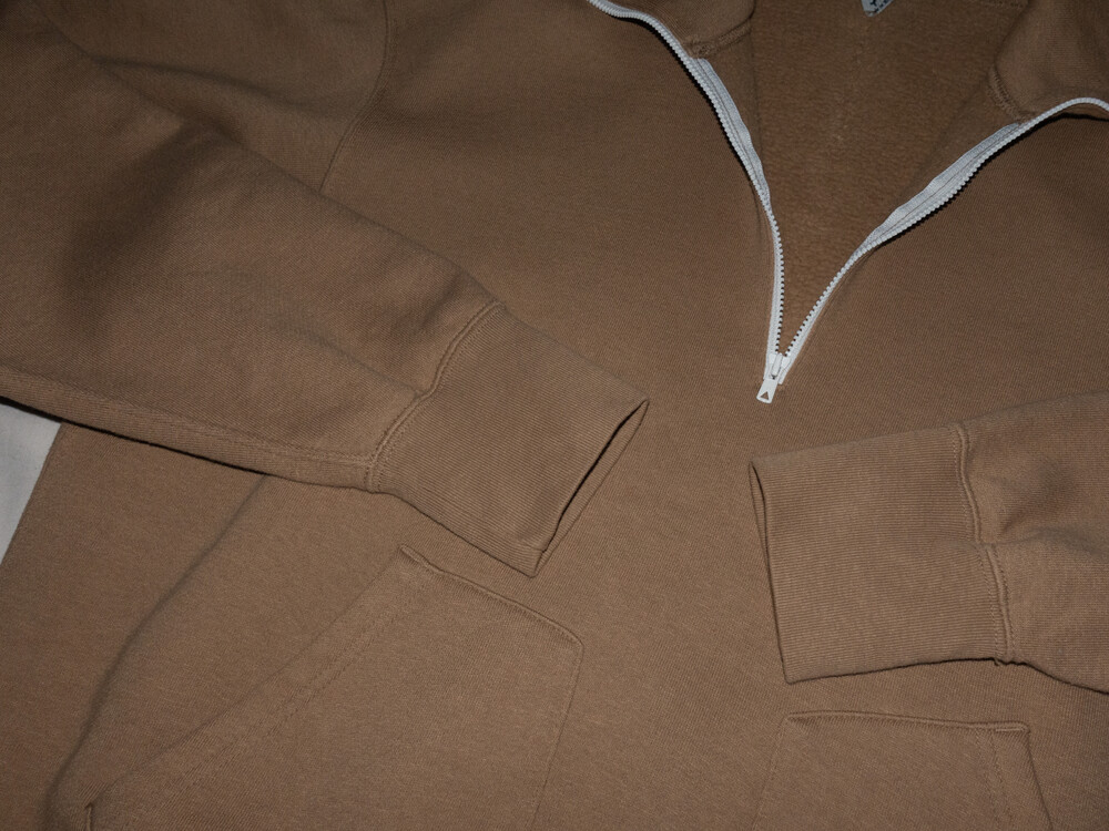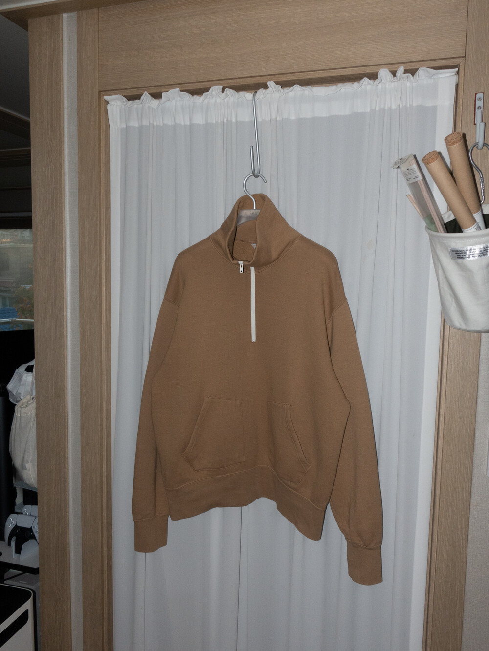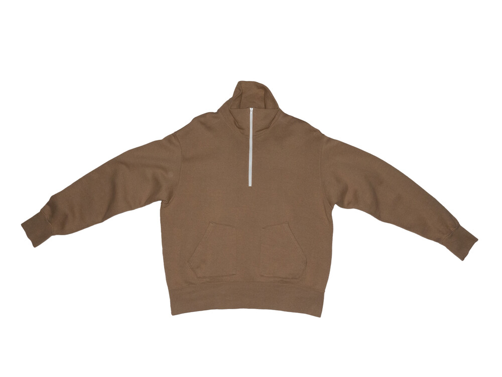 FILMELANGE - High Neck Half Zip Pocket Sweat (Soft Camel) | PARKER