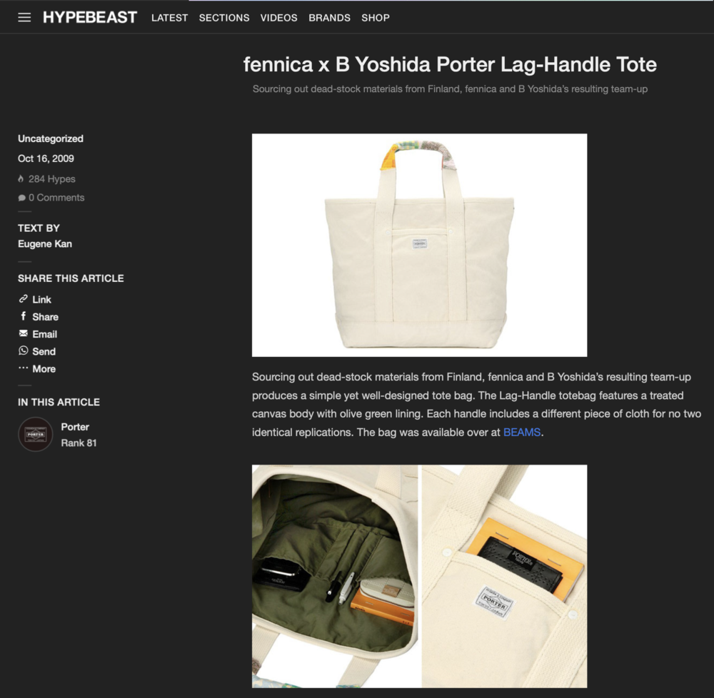 PORTER X FENNICA X B YOSHIDA - Lag Handle Tote Bag L (Khaki Brown)