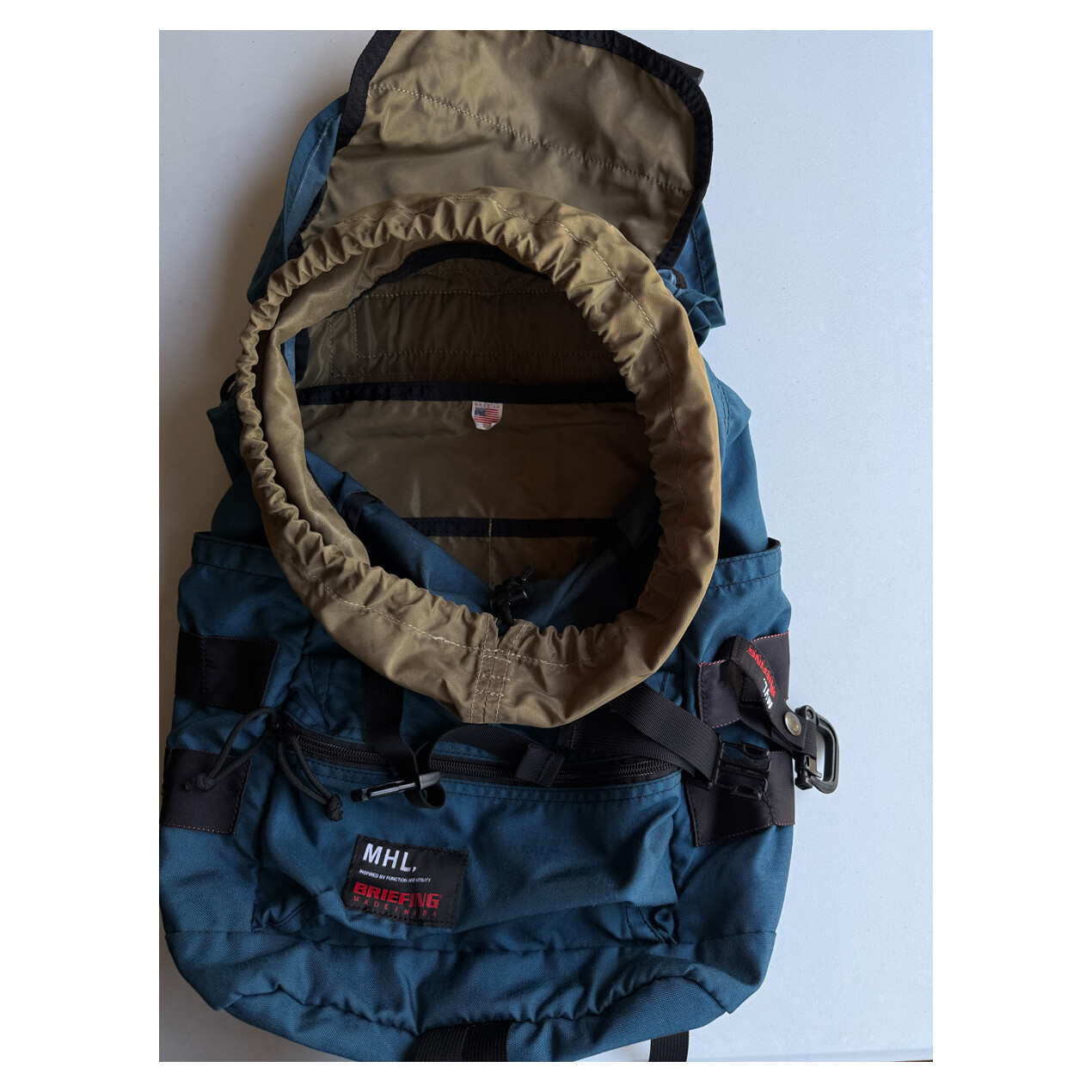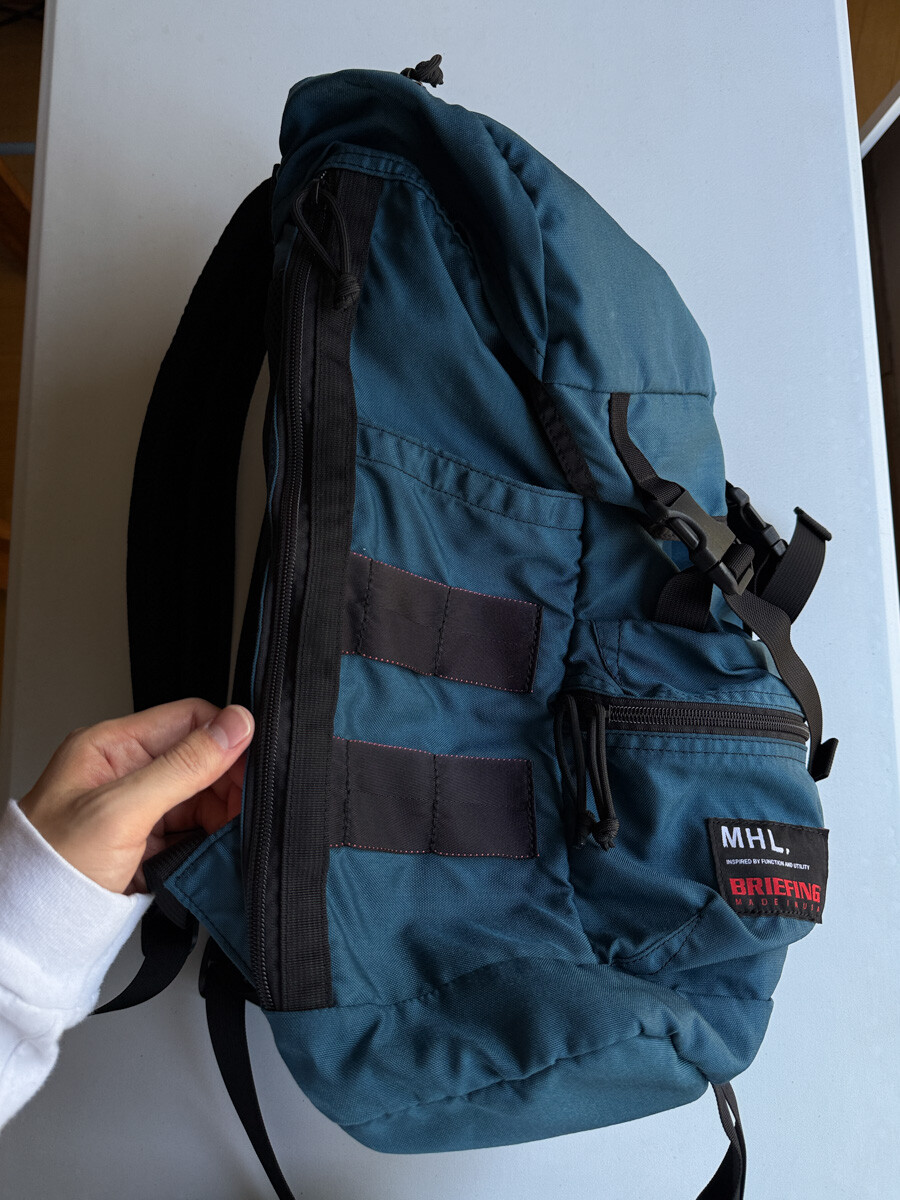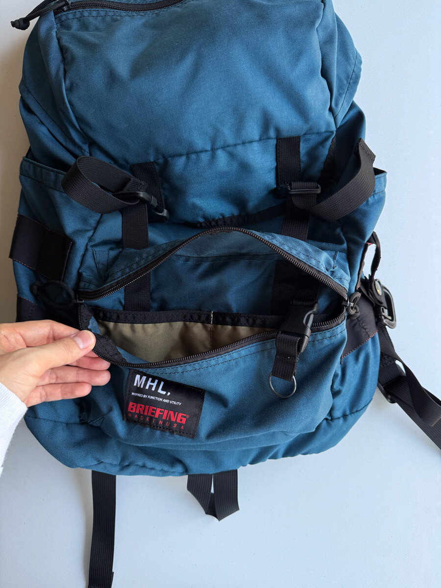 BRIEFING의 밀·스펙에 준거한 내구성이 있는 기능미를 표현하고 있기 때문에, 콜라보레인션 제품에는 밀·스펙의 가죽과 금속 부자재를 숄더나 핸들에 도입했습니다. 또한 세계적으로 평가가 높은 YKK 지퍼가 이용 되었습니다. 또한 솔기의 먼지를 방지하기 위해 독자적인 봉제 기술을 사용합니다. 한층 더 아이콘적인 디테일로서 나일론 테이프의 레드 라벨이 있어, 슬라이드 클립을 장착할 때의 시인성과 보강의 역할을 완수하고 있습니다. MHL과의 콜라보레이션에서는 디테일을 최대한 배제하고, 보다 단순함을 요구 만들어졌습니다. 그러나, BRIEFING의 밀 스펙 기준 물건 만들기는 제대로 표현하고 있습니다.