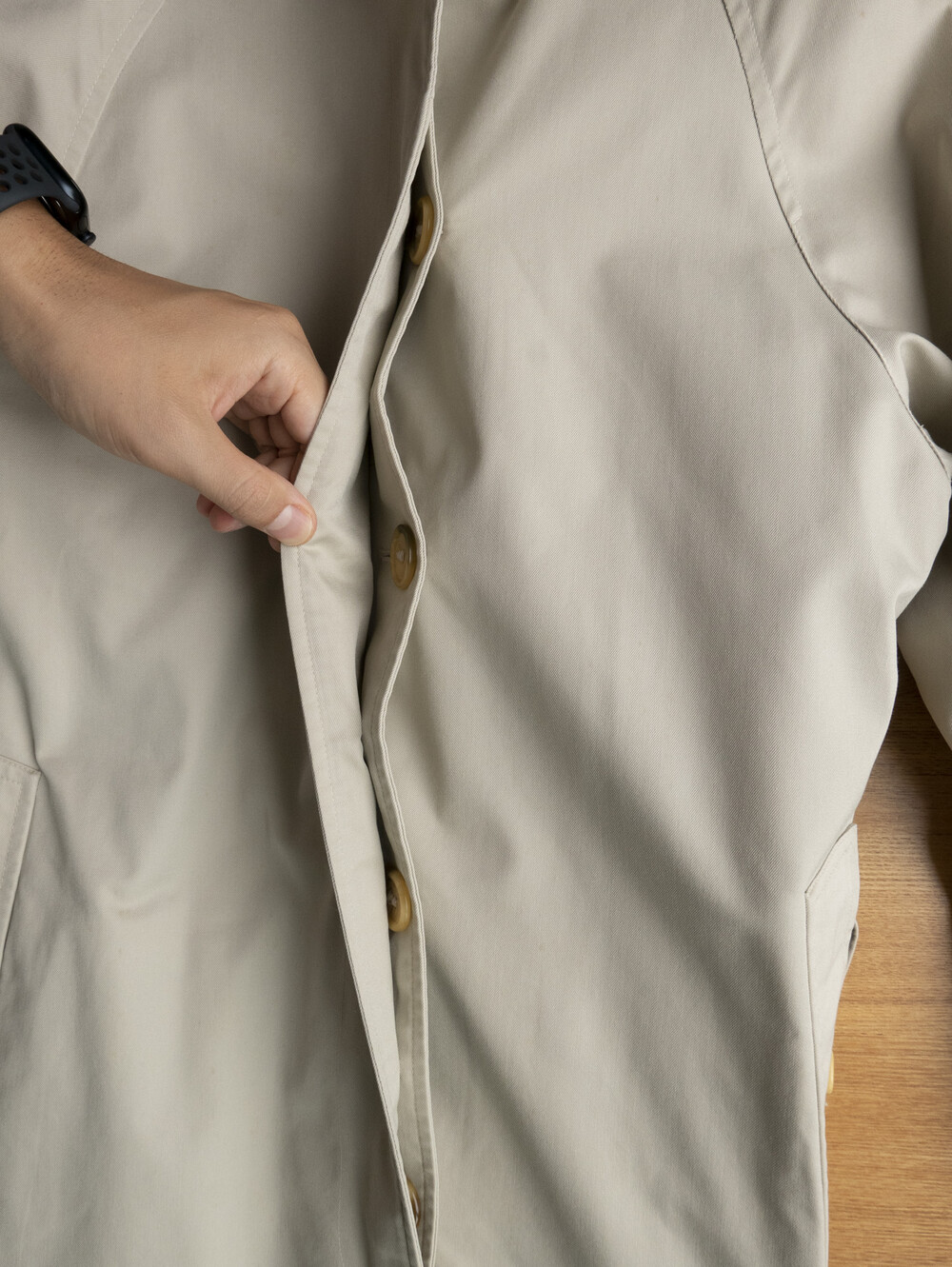 트렌치코트보다 체면을 덜 차린듯한, 무심한 느낌의 싱글 코트 입니다.