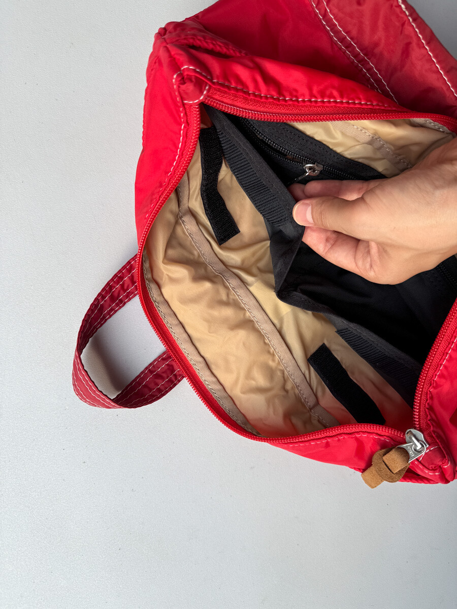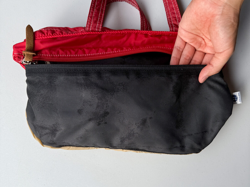 메인 소재에는 발수 가공을 실시한 경량의 나일론 태프터를 표지·안감 함께 채용했습니다. 표지와 안감 사이에는 부직포와 같은 심재를 전체에 넣는 것으로, 얇은 천이면서도 볼륨감을 주고, 면 본딩과는 또 다른 부드러움을 가진 독특한 감촉으로 완성하고 있습니다.