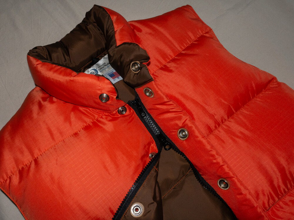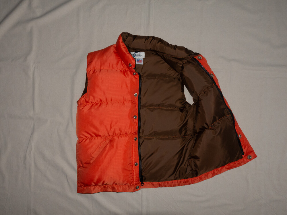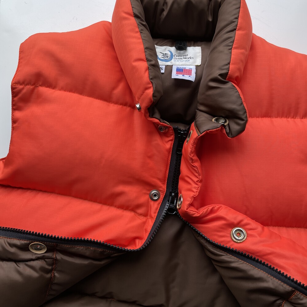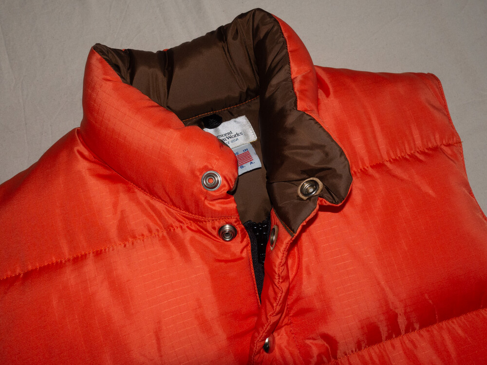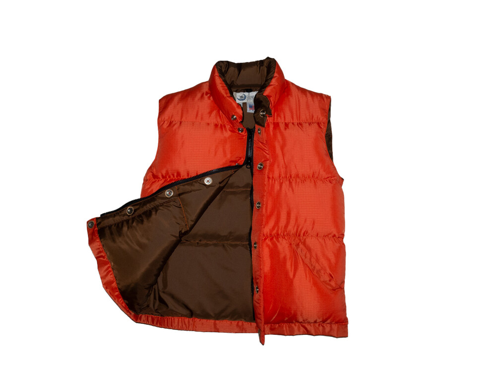 CRESENT DOWN WORKS - Nylon Down Vest (Orange Red / Deep Brown) *women size