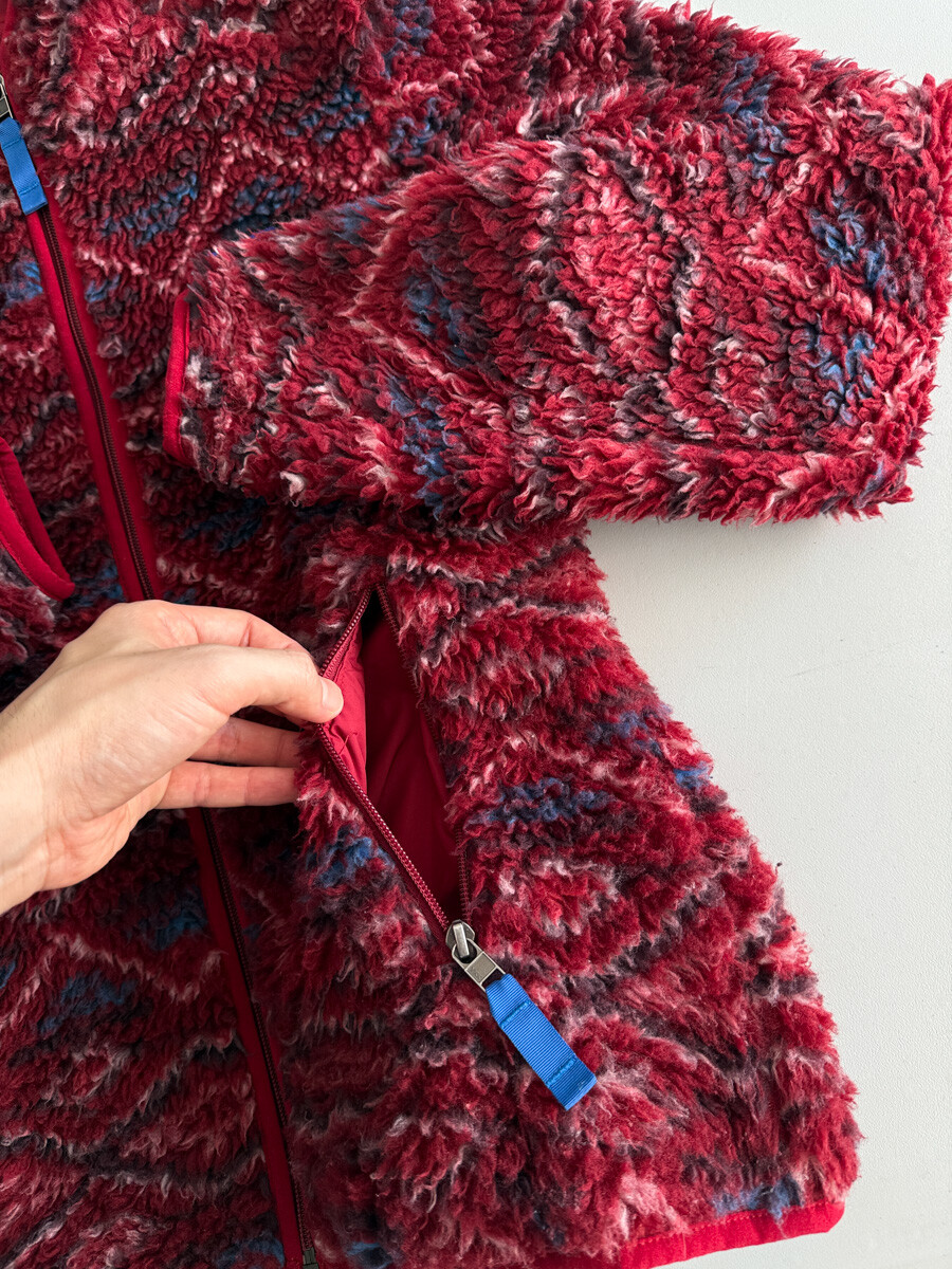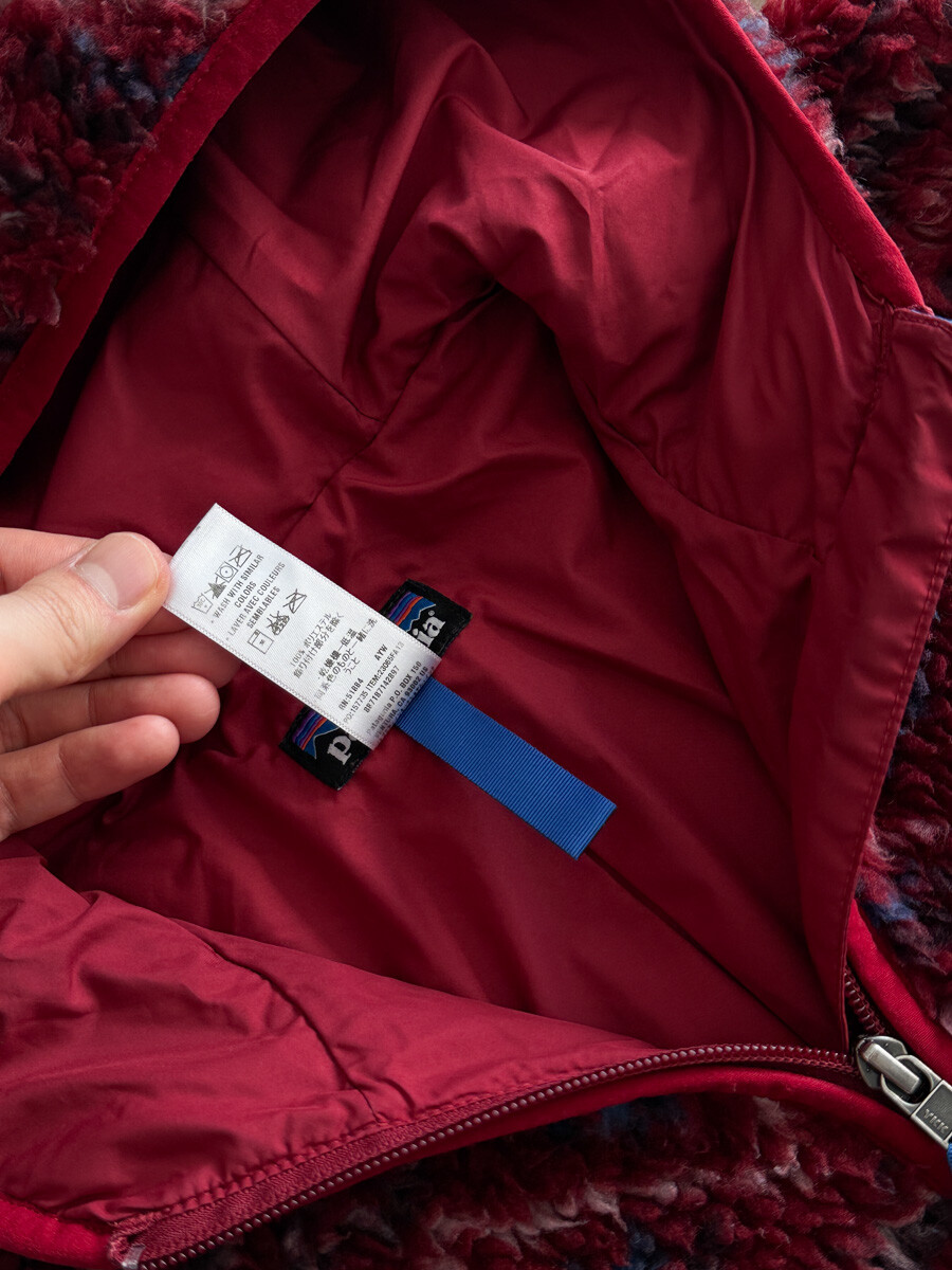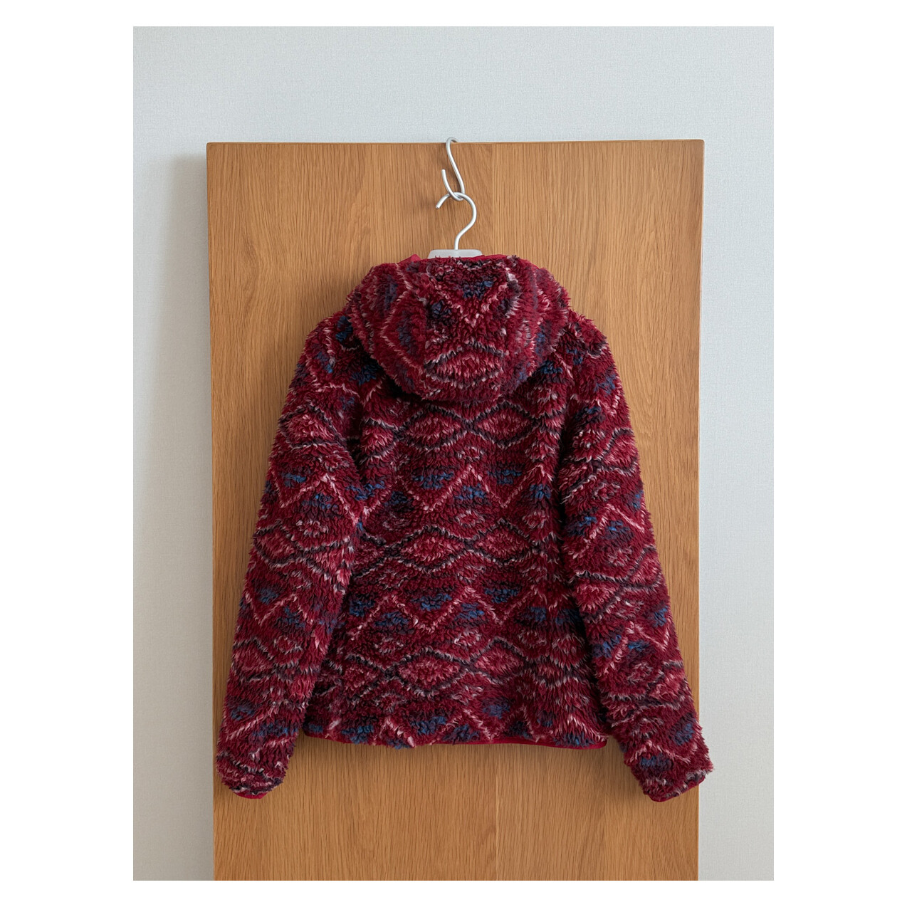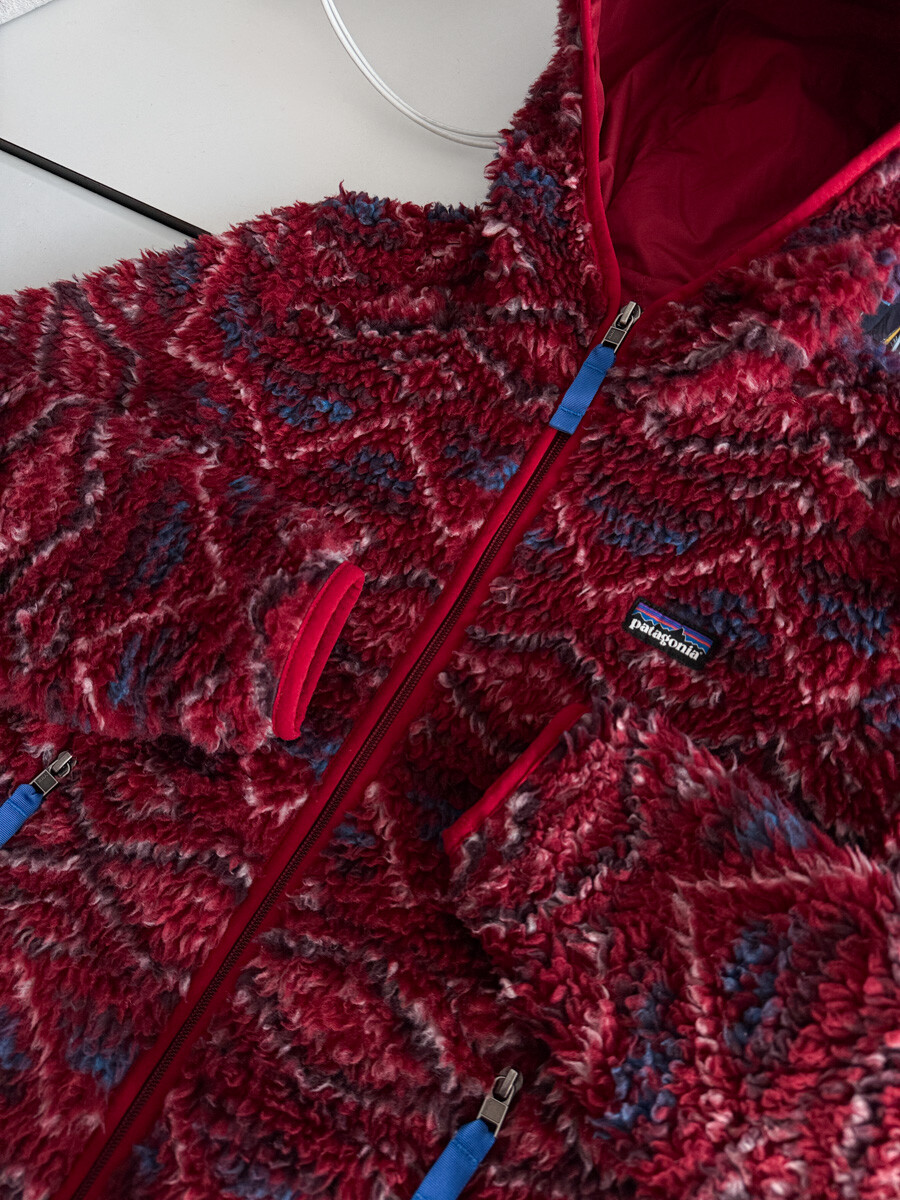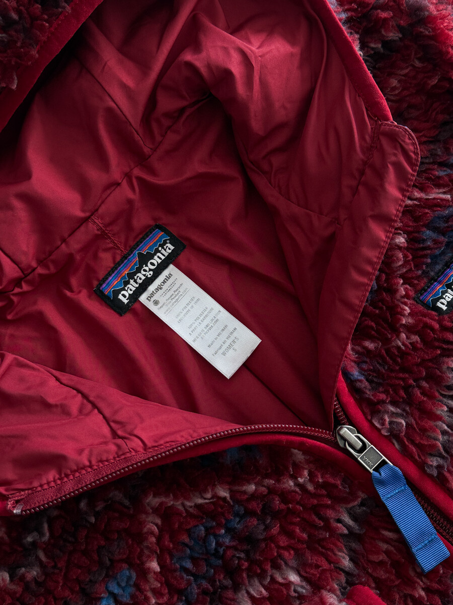 2010S PATAGONIA - Classic Retro X Deep Pile Fleece Zip Up Hood Jumper (Ethnic Aztec / Indian Red Blue White) *women size S
