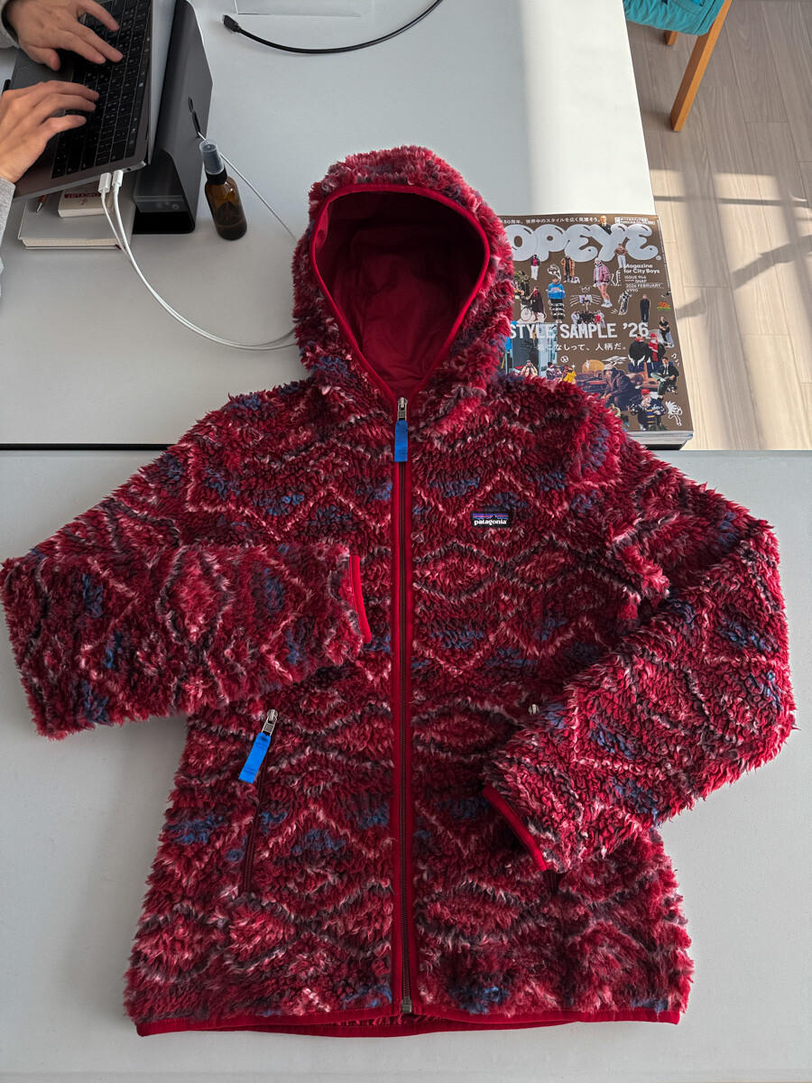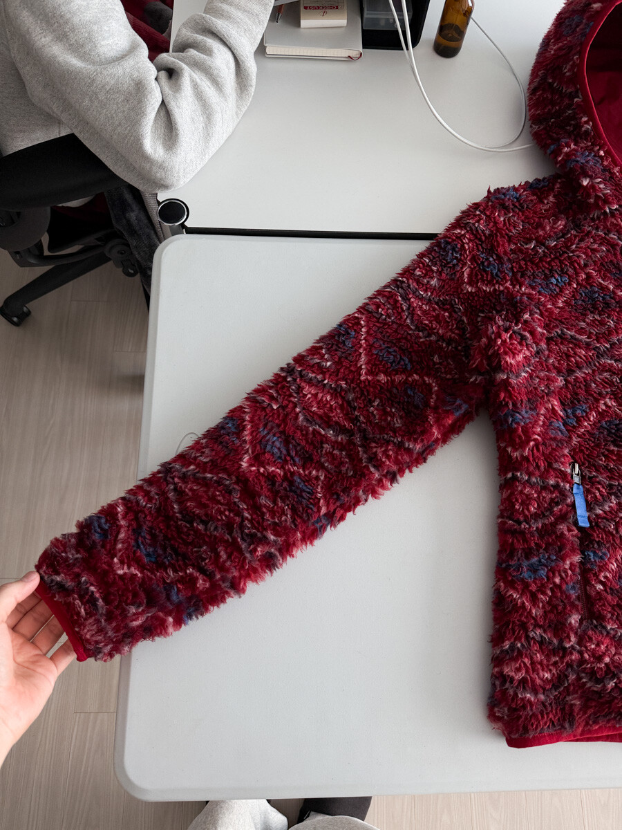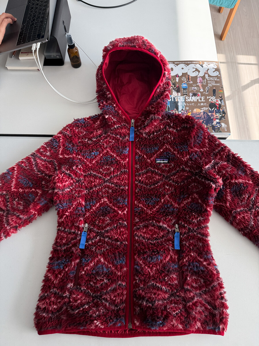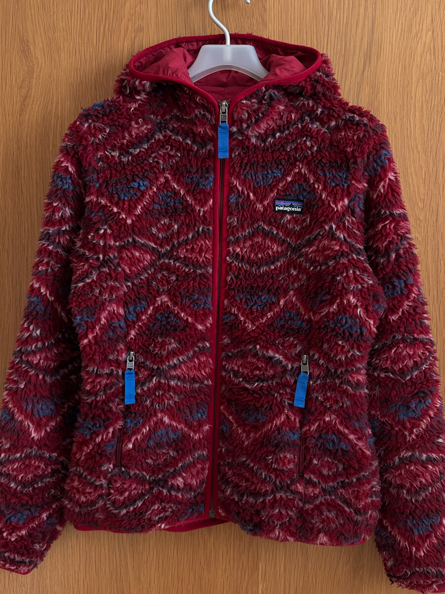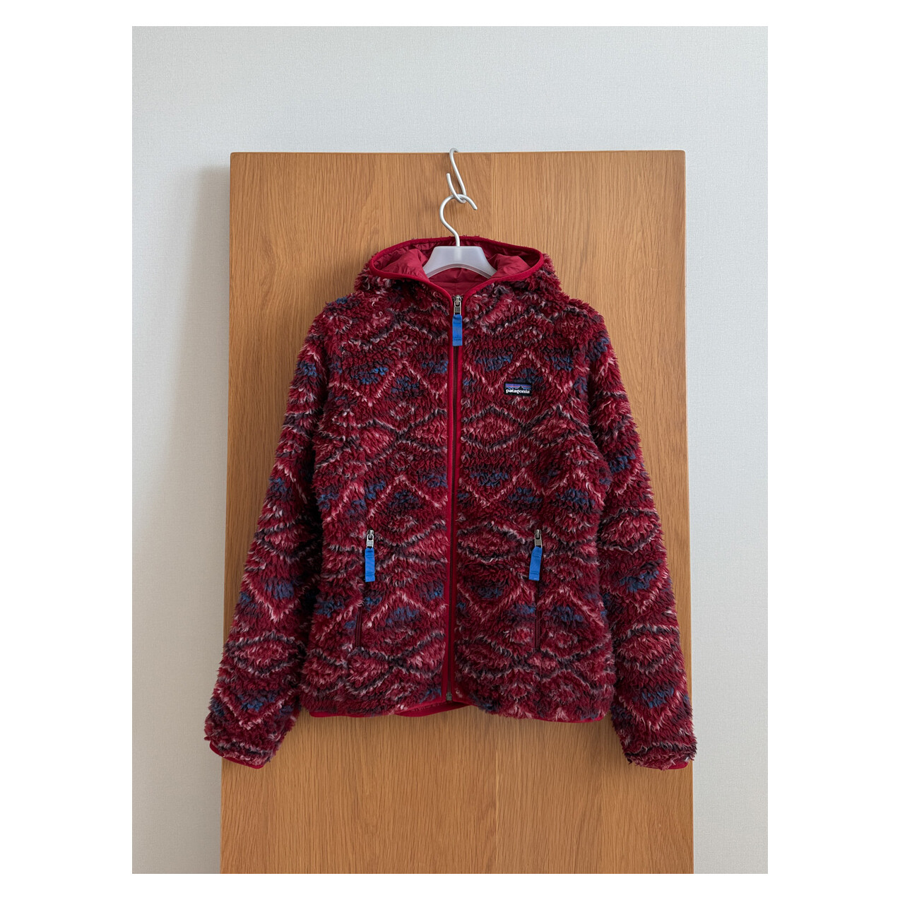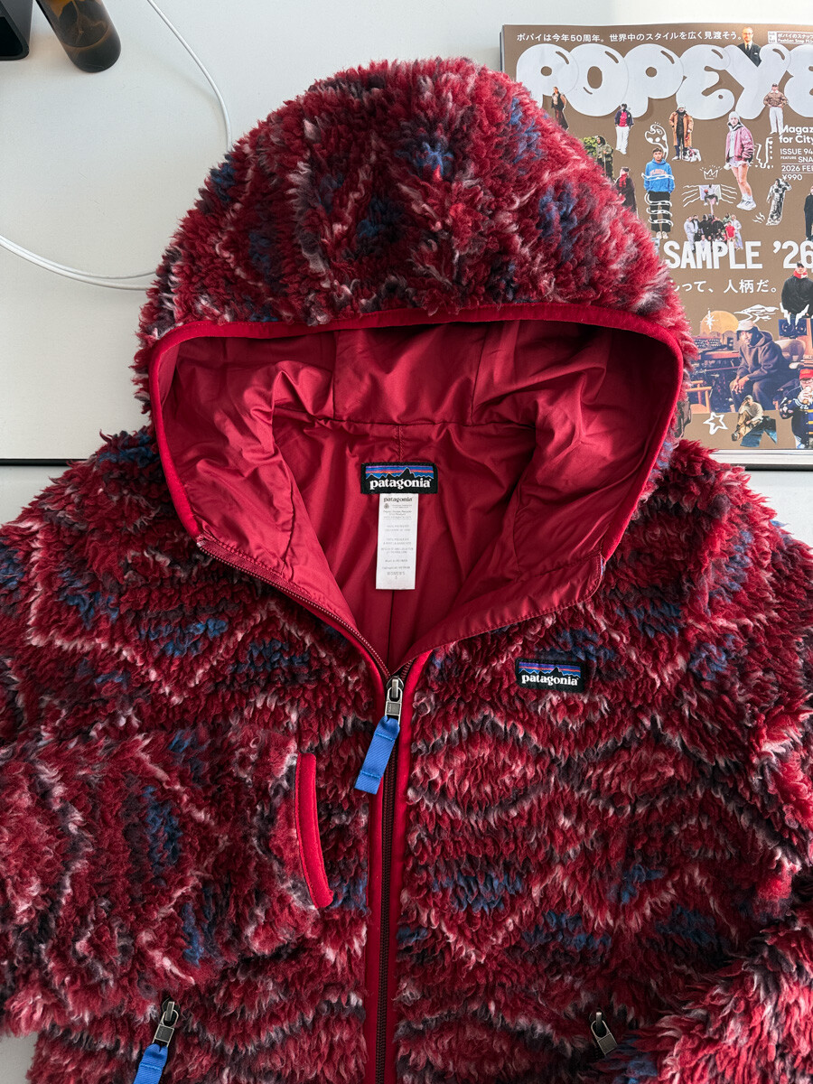 2010S PATAGONIA - Classic Retro X Deep Pile Fleece Zip Up Hood Jumper (Ethnic Aztec / Indian Red Blue White) *women size S