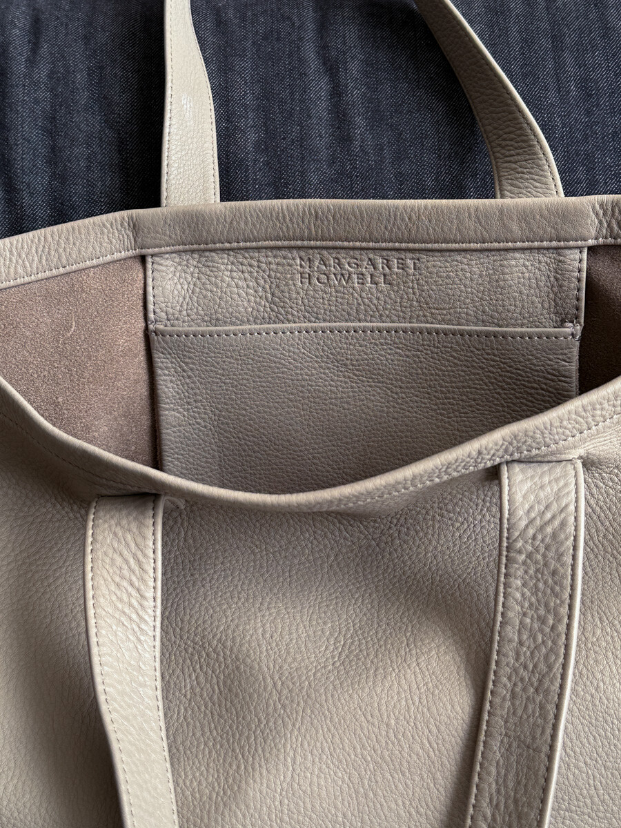 MARGARET HOWELL - SHRINK Leather Tote Bag (Natural Gray)