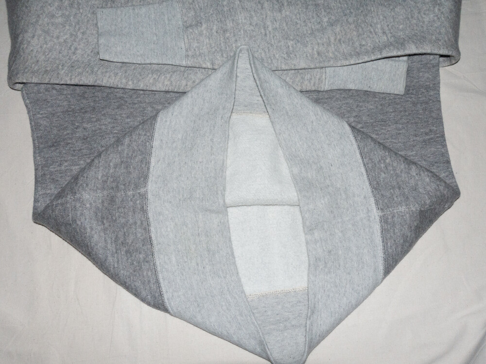 1950년대부터 고즈넉하게 남아있는 '매다는 뜨개질기'로 원단을 생산하고 있어 실에 부담을 주지 않고 중력에 의해 떨어지는 힘만으로 짜여나가기 때문에 '공기를 함께 엮고 있는' 것처럼 통통하고 부드러운 탄력이 있는 원단이 가능합니다. 세탁 등으로 인한 모양새가 쉽게 흐트러지지 않으며 원단의 탄력도 잃지 않습니다.
