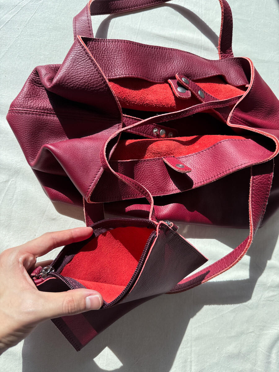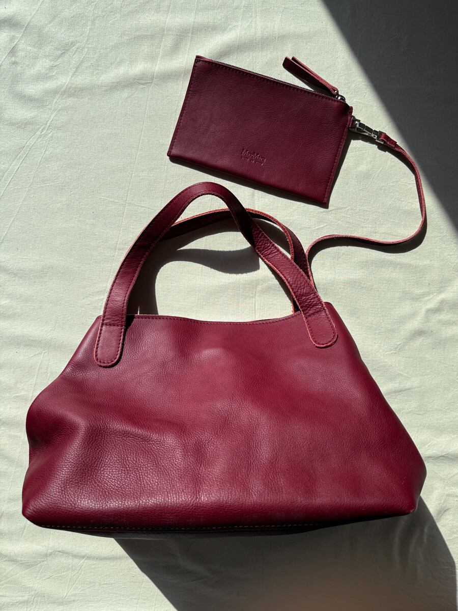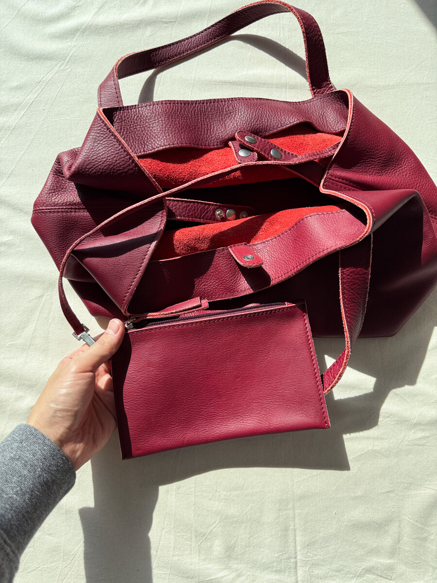old MAX MARA - Leather Tote Bag (Deep Red) *with Pouch