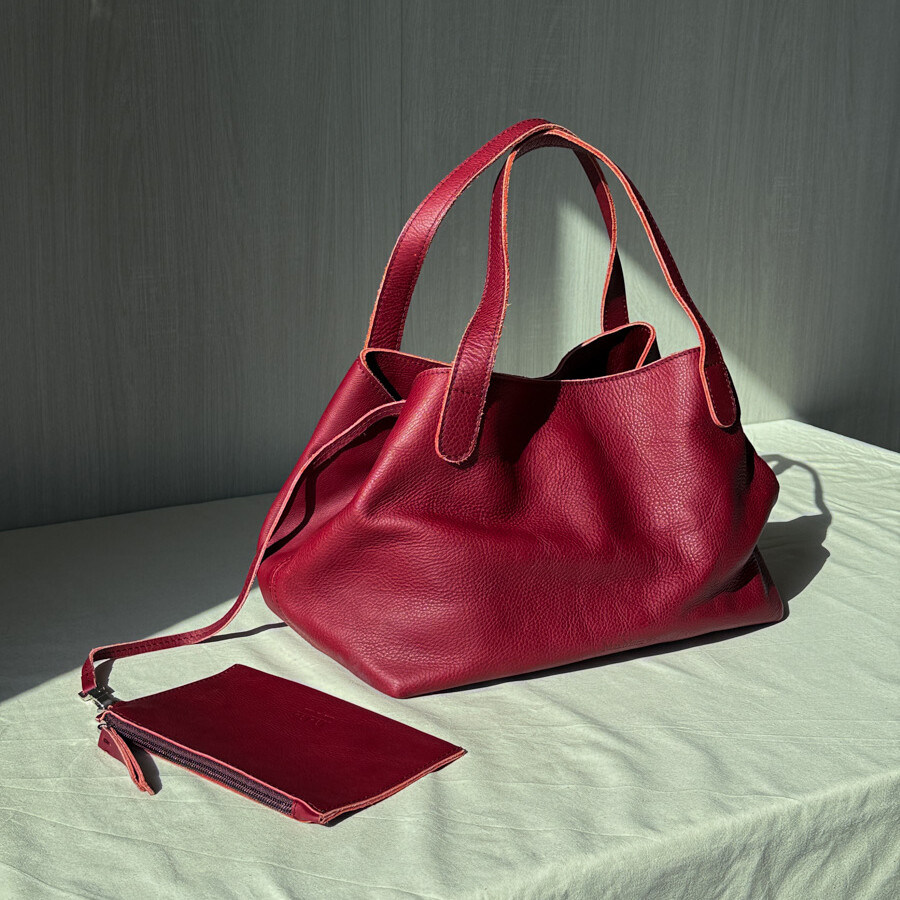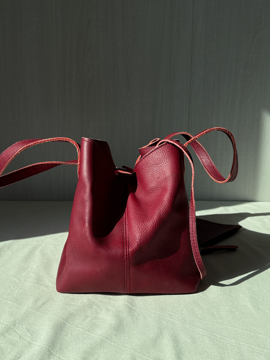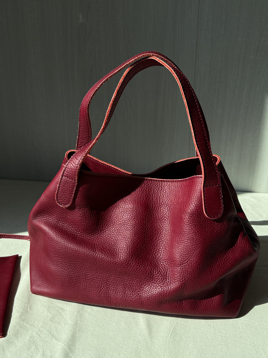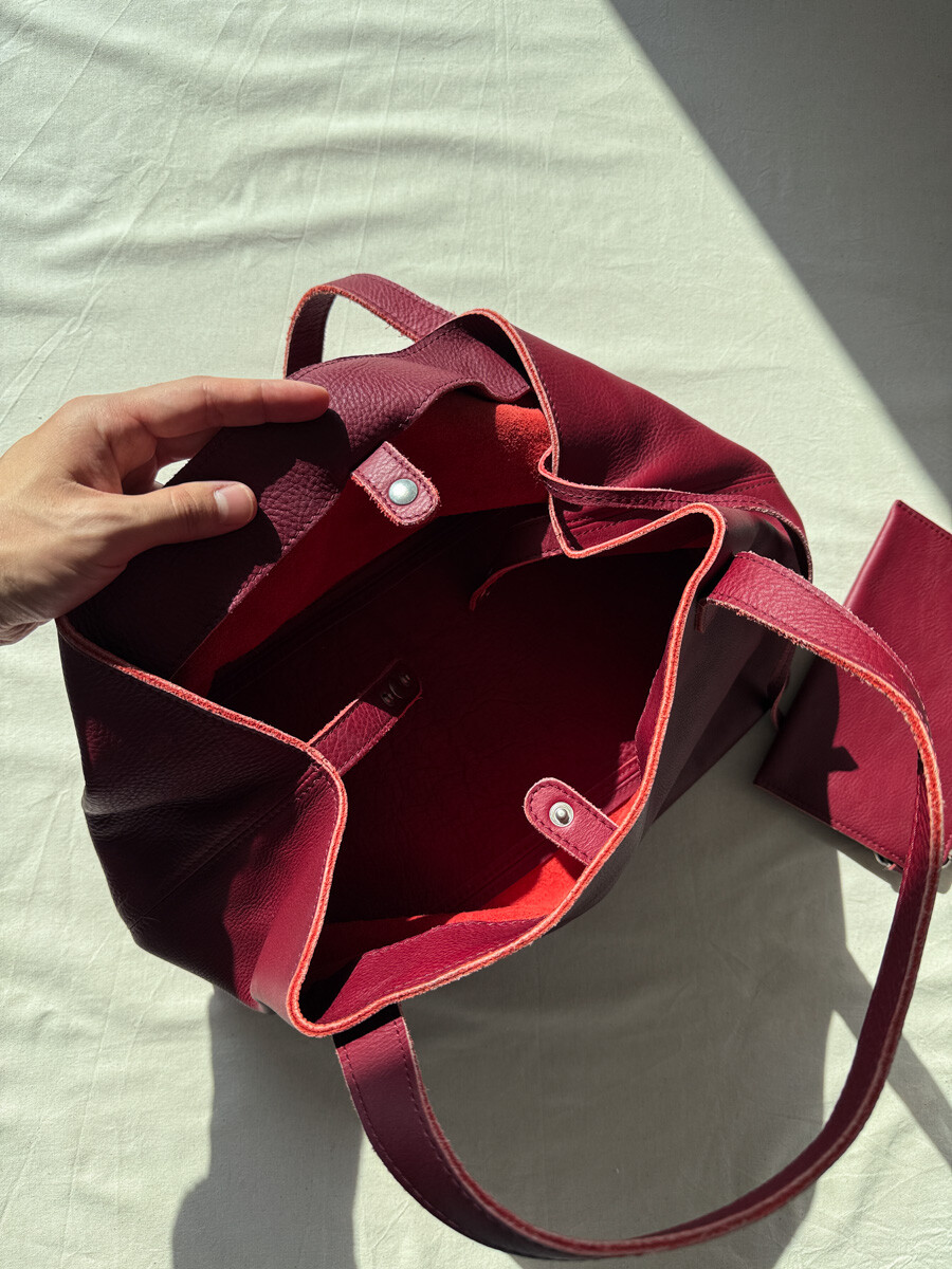 old MAX MARA - Leather Tote Bag (Deep Red) *with Pouch