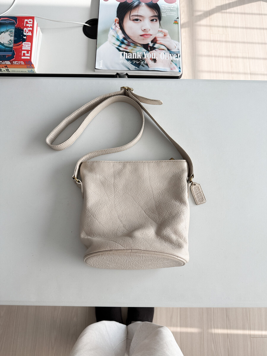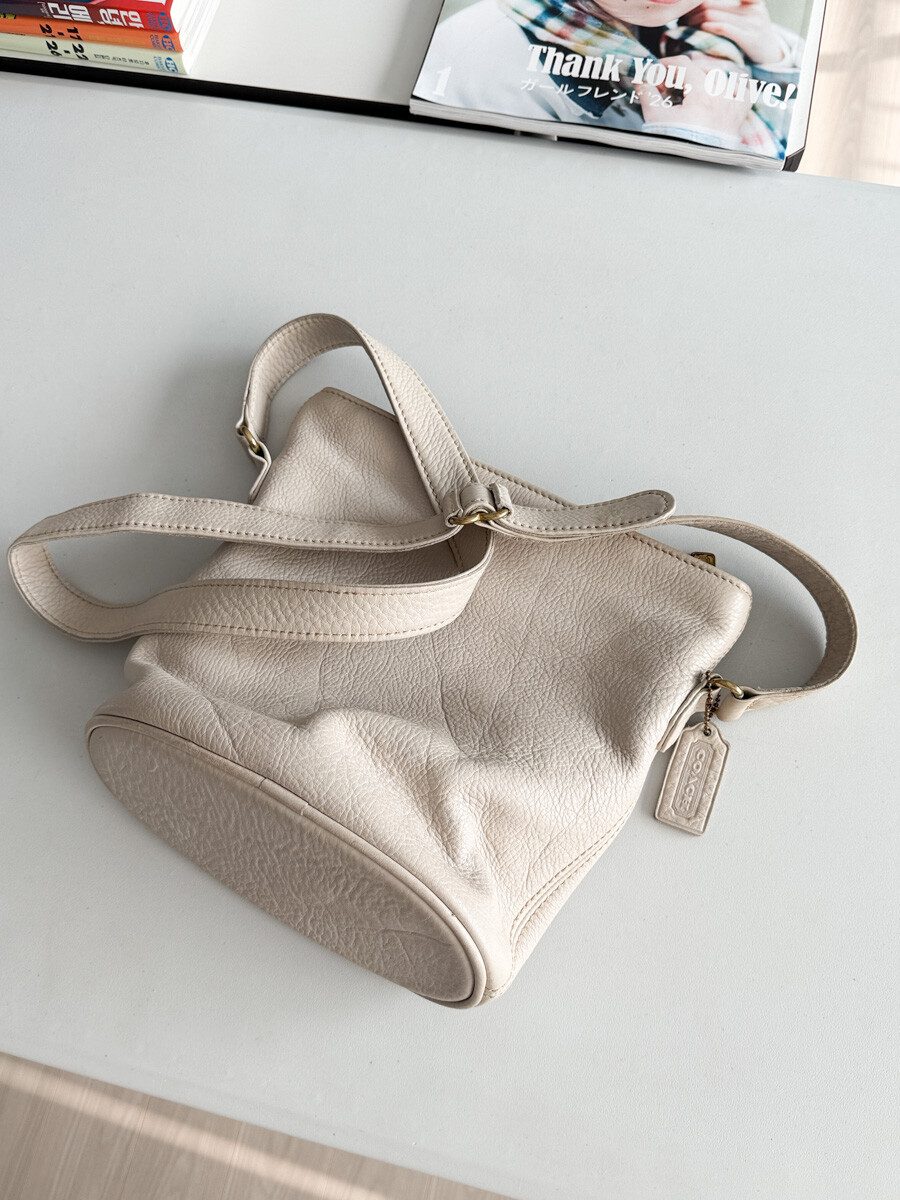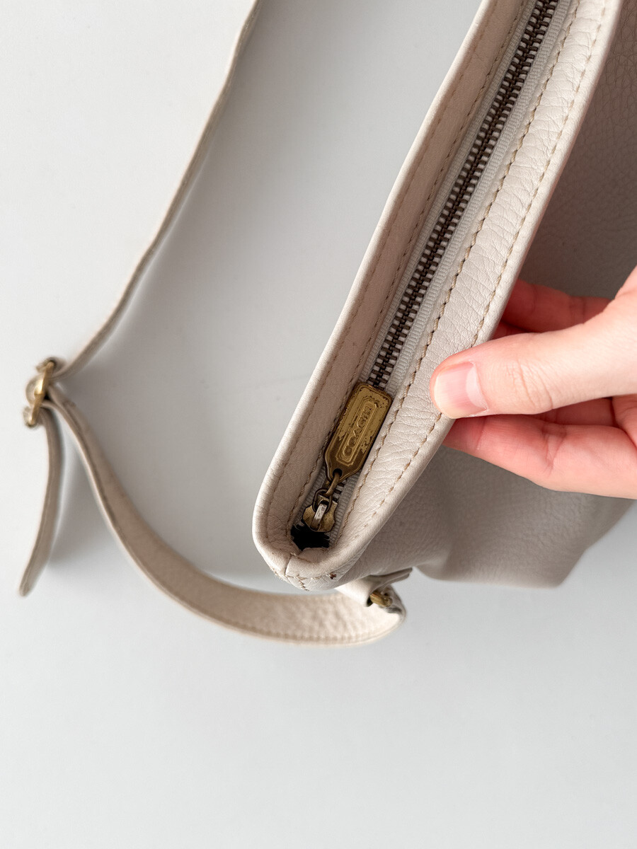 old COACH - Leather Shoulder Bag (Cream Gray) 4907 *FULL GRAIN COWHIDE
