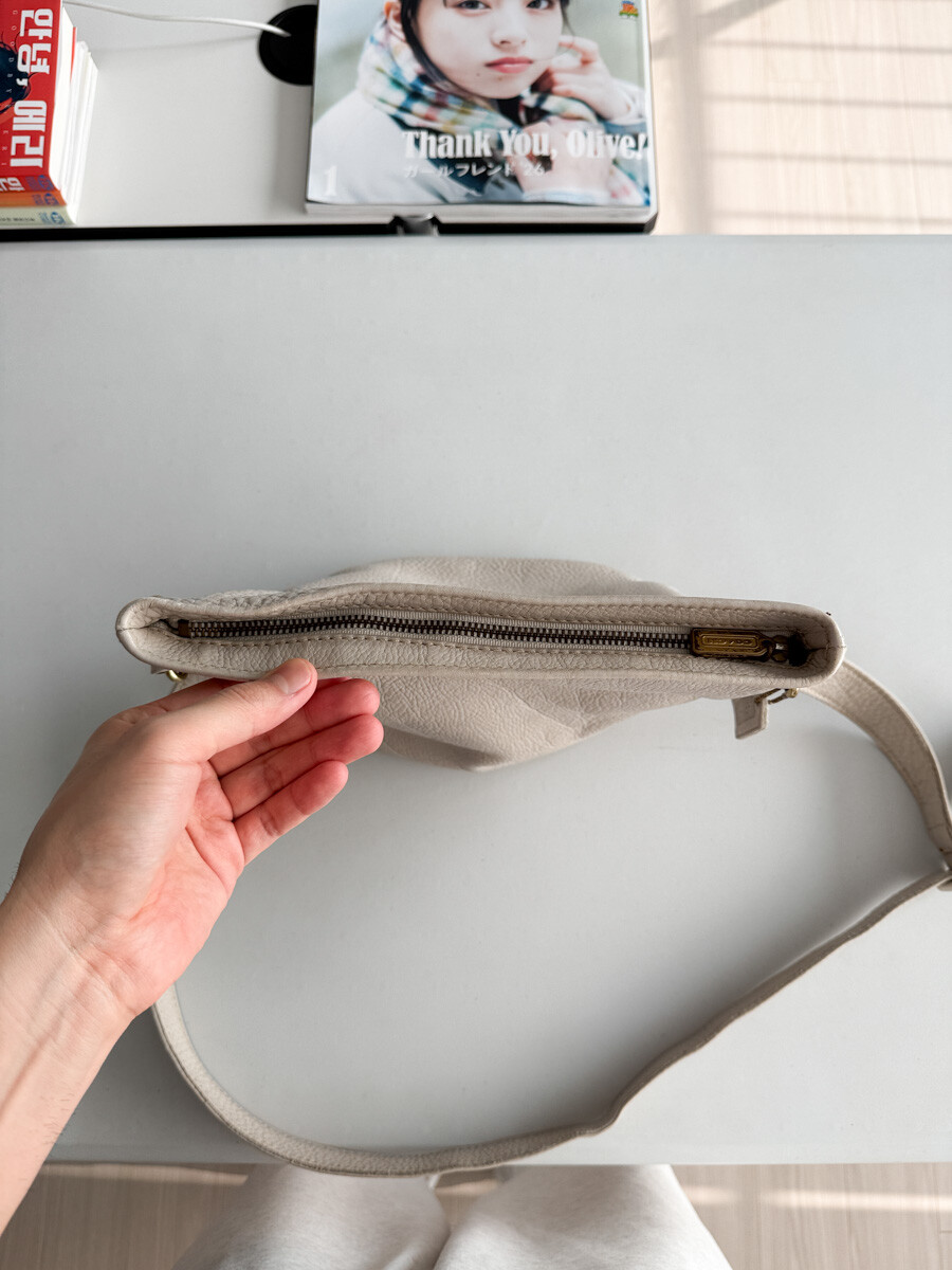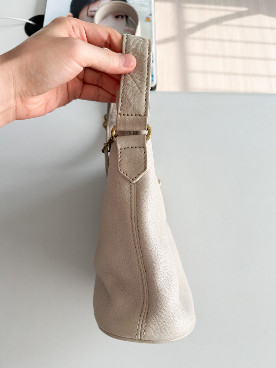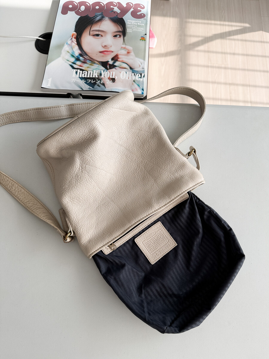 old COACH - Leather Shoulder Bag (Cream Gray) 4907 *FULL GRAIN COWHIDE