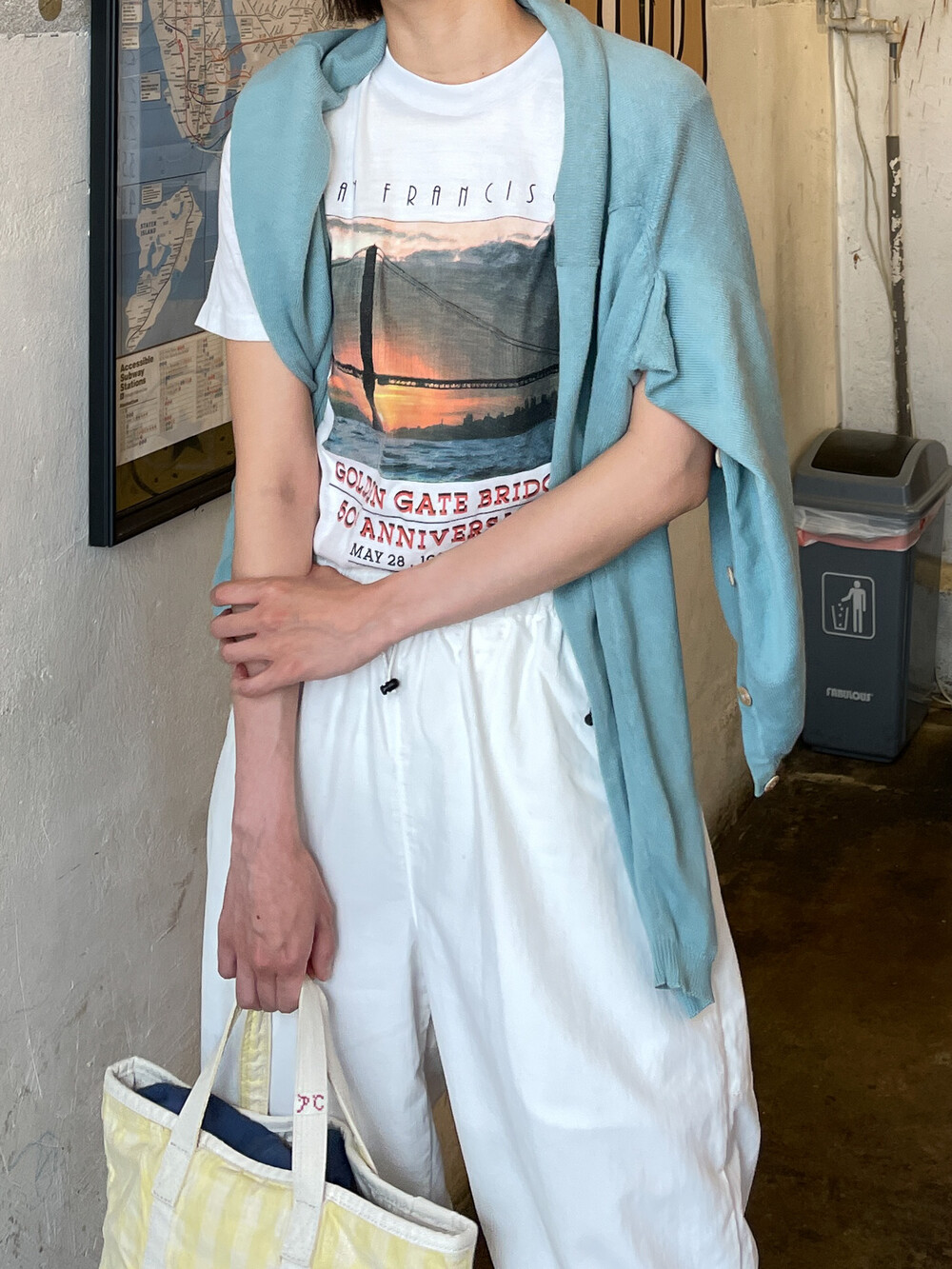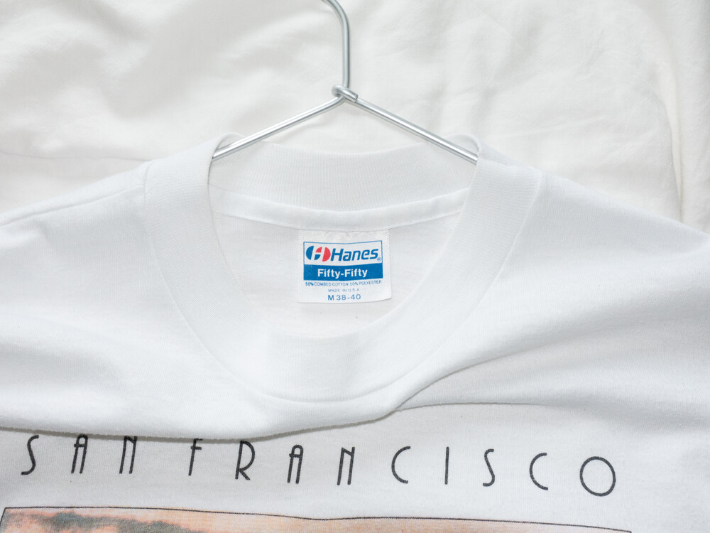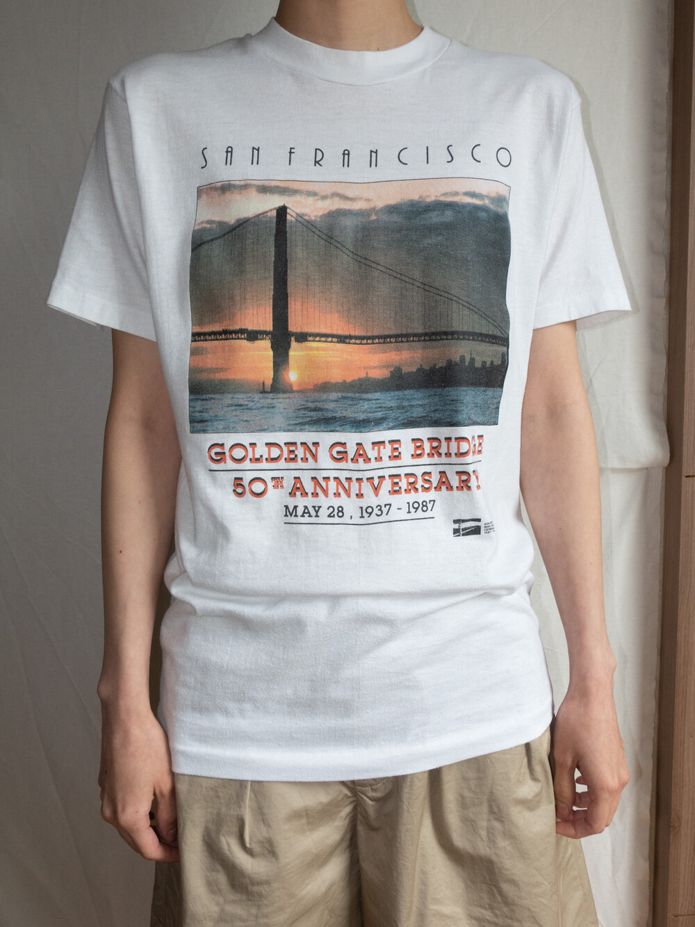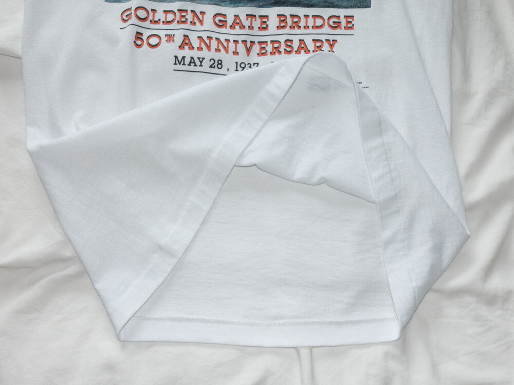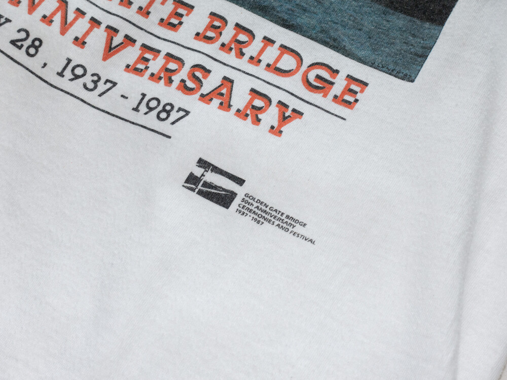 π 1990S USA Vintage - T Shirt (Natural White) *San Francisco GOLDEN GATE BRIDGE 50th anni