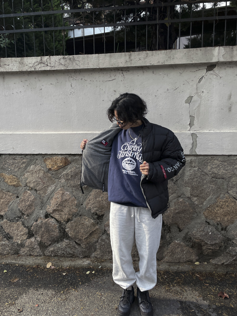 1990S POLO JEANS - Reversible Down Parka (Black / Gray)