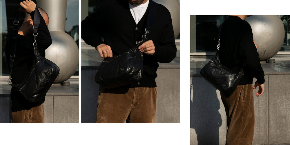 엄선된 오리지널 소재가 내뿜는 섬세한 광택감과 연마된 금속 부품의 콤비네이션이 매력인 캐주얼 시리즈, "PORTER SHINE(포터샤인)".