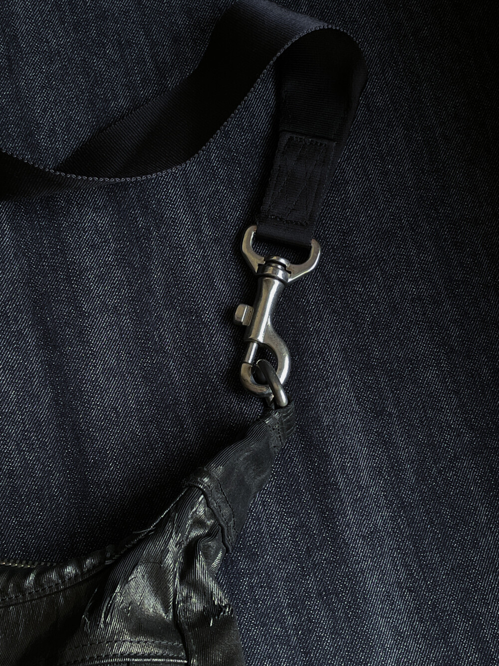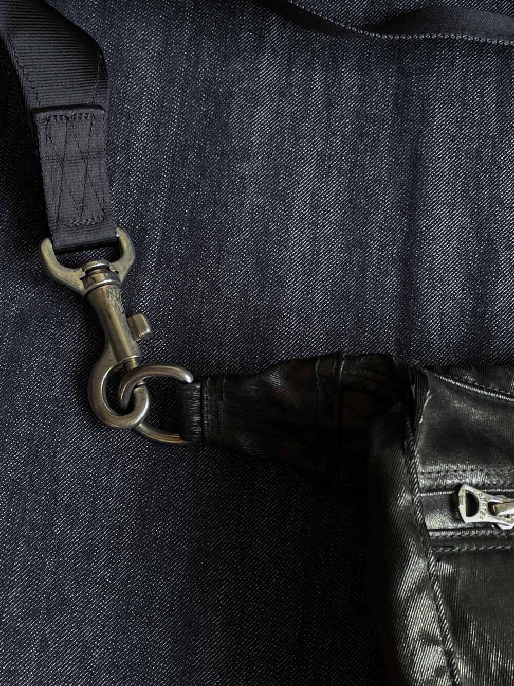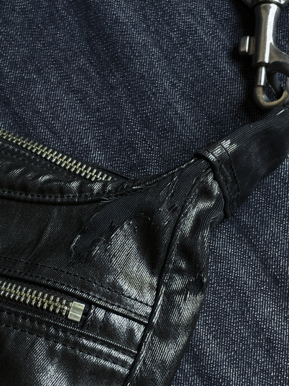 액체 염색(※1)으로 주름진 나일론 바탕에 알루미늄 분말을 섞은 안료 코팅을 함으로써 생기는 독특한 광택과 질감이 있는 오리지널 원단이 가장 큰 매력입니다.장인의 고도의 연마 가공(폴리시)으로 마감된 금구나 지퍼가 내뿜는 고급스러운 광택감과의 대비도 포인트.