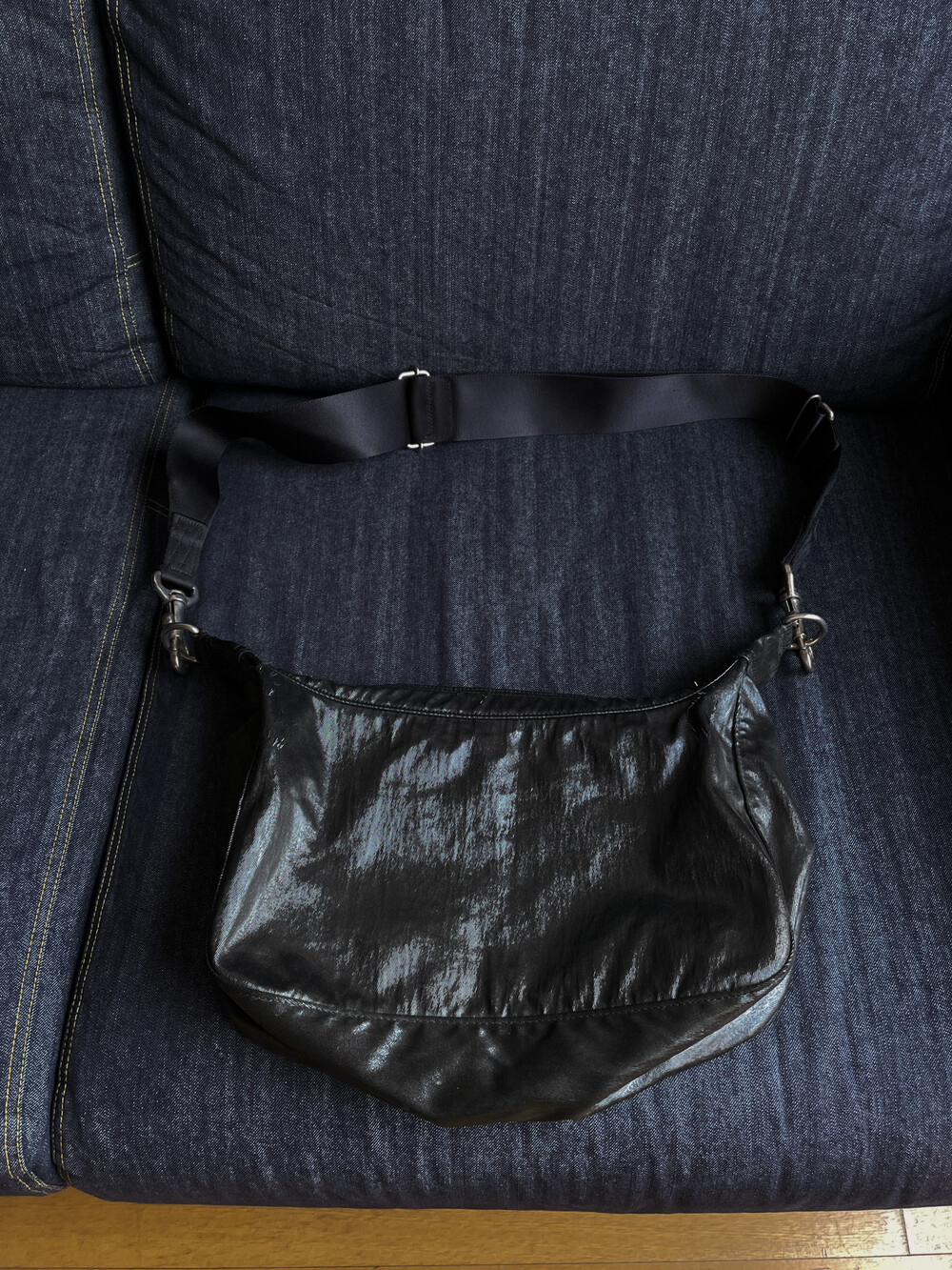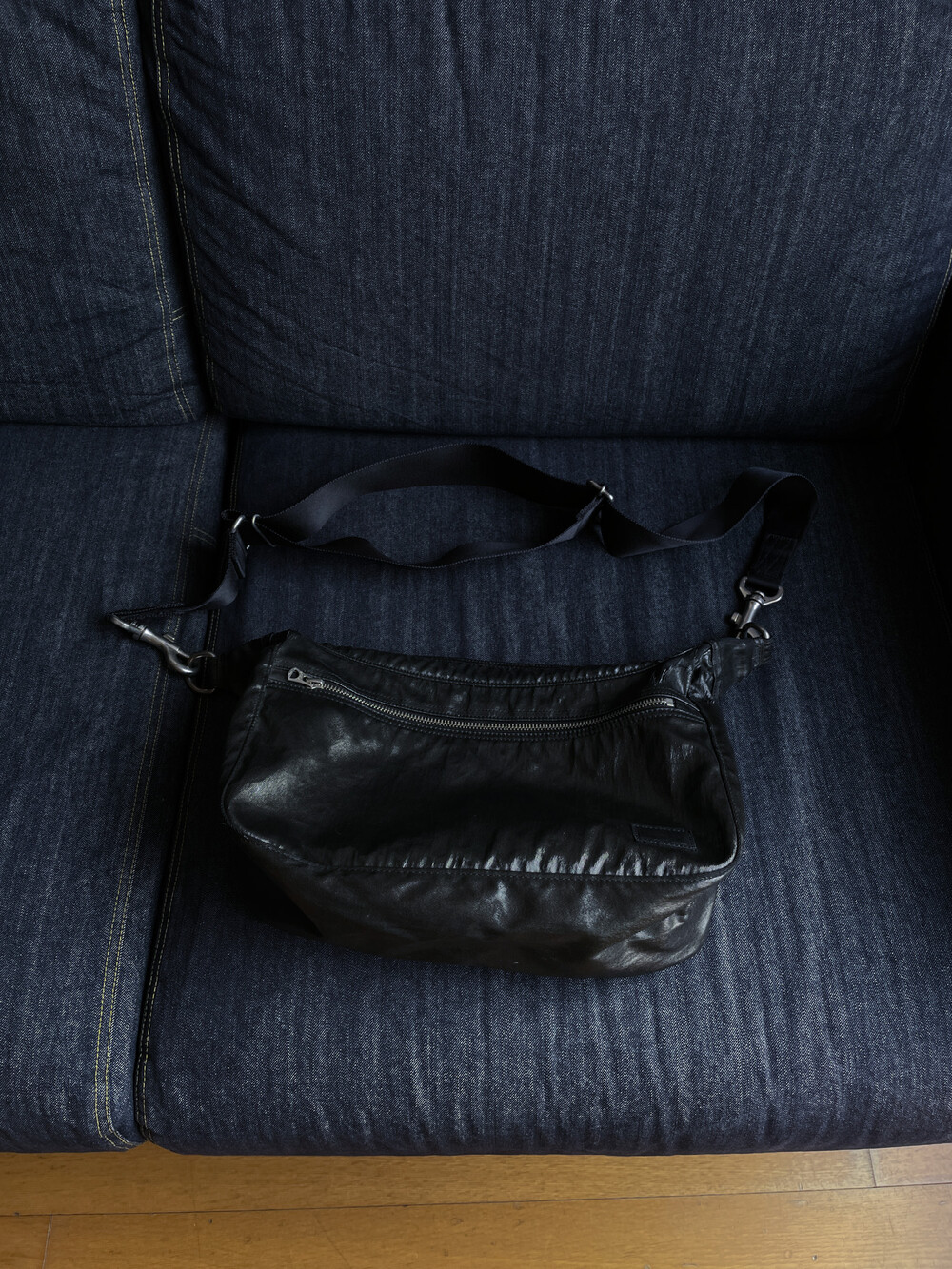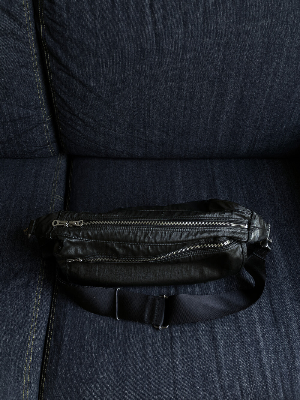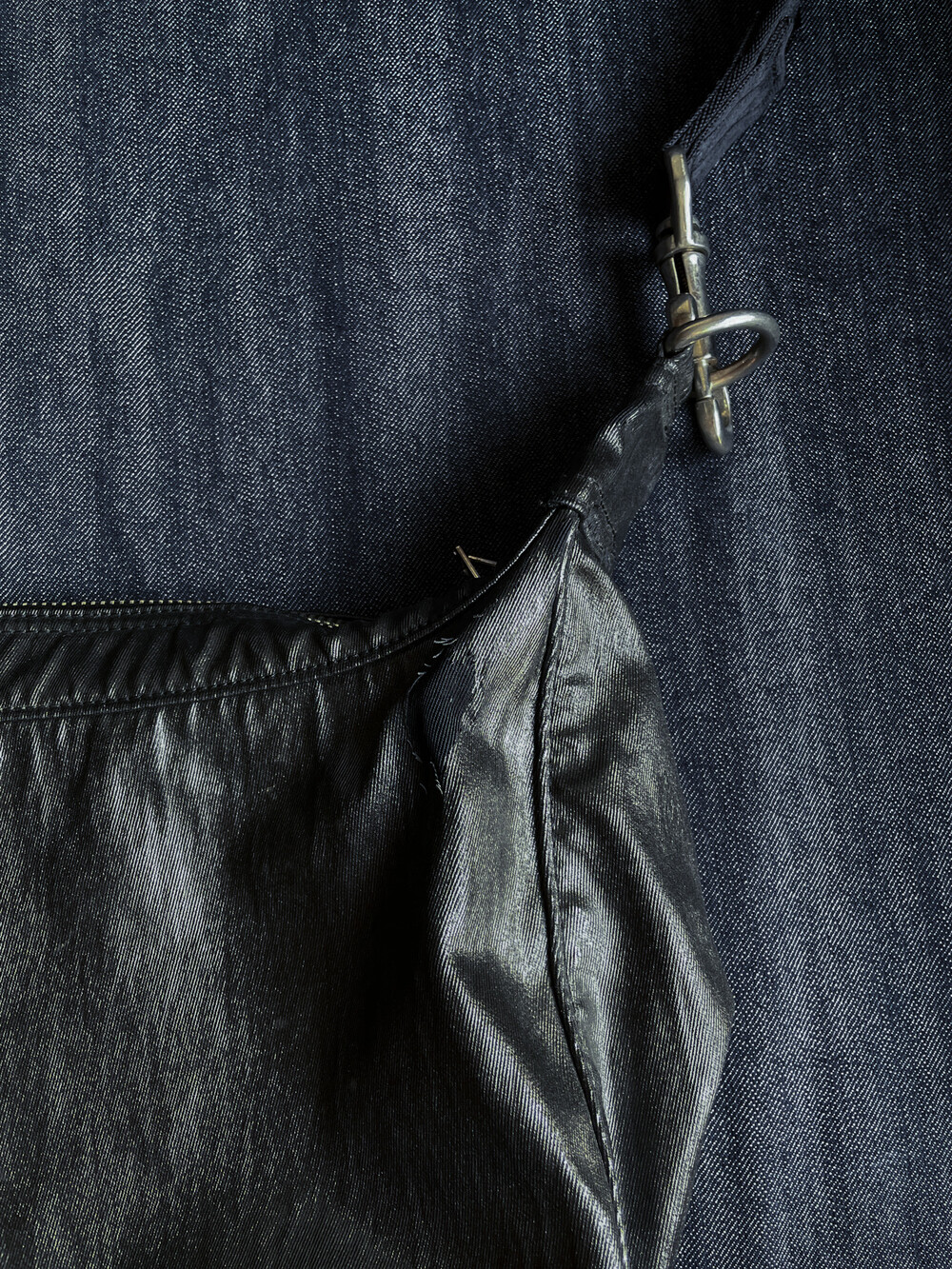 액체 염색(※1)으로 주름진 나일론 바탕에 알루미늄 분말을 섞은 안료 코팅을 함으로써 생기는 독특한 광택과 질감이 있는 오리지널 원단이 가장 큰 매력입니다.장인의 고도의 연마 가공(폴리시)으로 마감된 금구나 지퍼가 내뿜는 고급스러운 광택감과의 대비도 포인트.