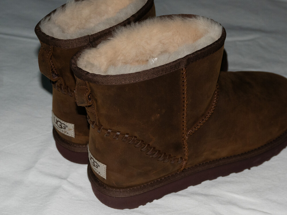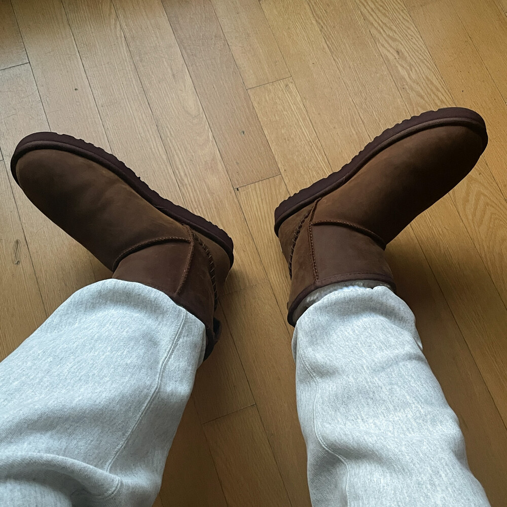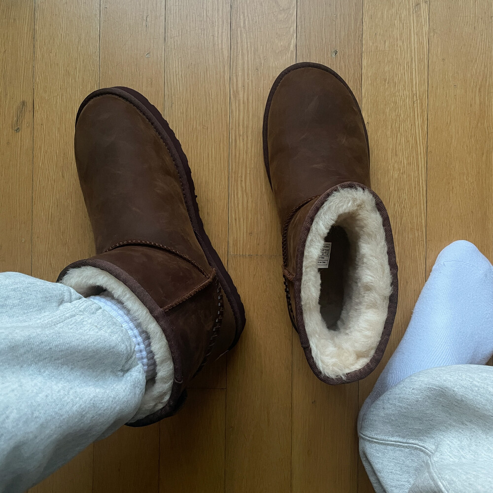 *어그의 대부분 제품은 천연 가죽을 사용합니다. 눈이나 비가 올 때 착용할 경우 얼룩과 변색에 취약합니다. 수명을 보장하기 위해 주의하여 취급하는 것이 좋으나, 얼룩이 생기면 그런대로 놔두고 것도 나만의 어그를 만들 수 있다는 점으로 충분히 재밌습니다. 또한 얼룩이 싫다면 겨울내 신고 세탁소에 클리닝을 맡기는 방법도 편리하고 추천할만 합니다.