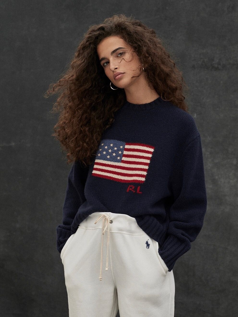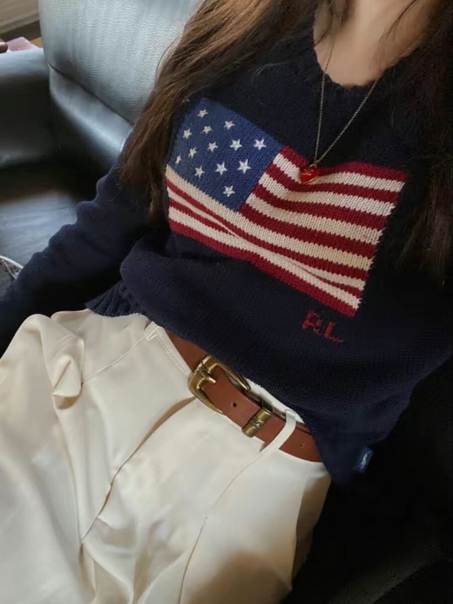 1990S POLO RALPH LAUREN - USA Flag Shawl Collar Classic Sweater (Navy) *women size