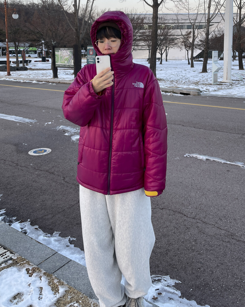 1990S THE NORTH FACE - PRIMALOFT Hooded Padding (Deep Plum & Yellow) *with pouch