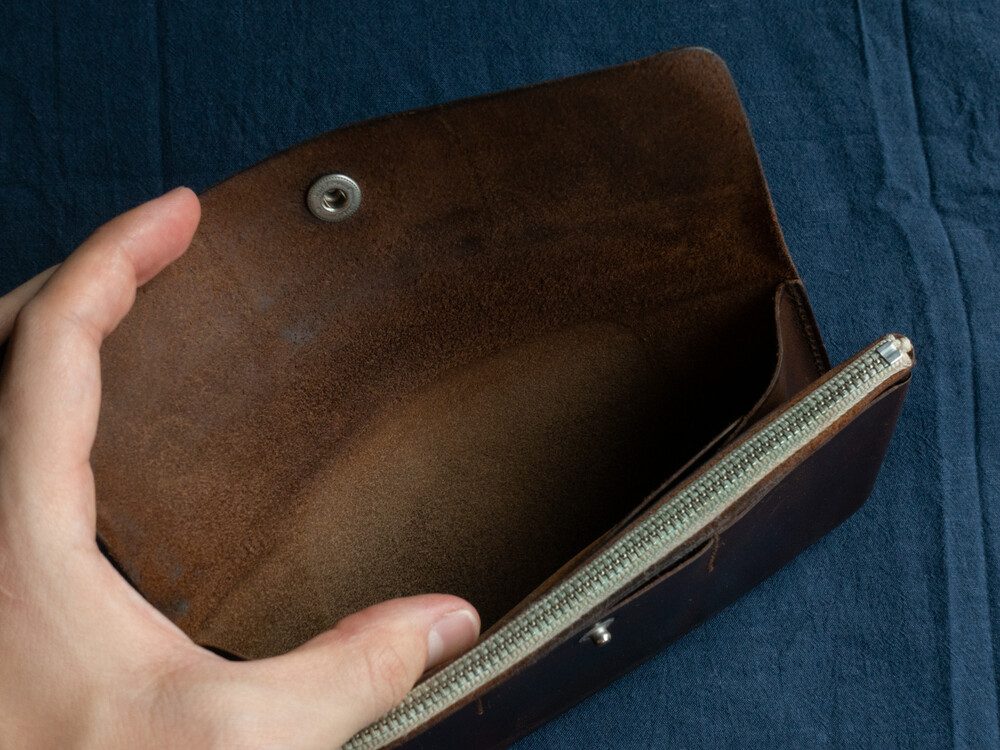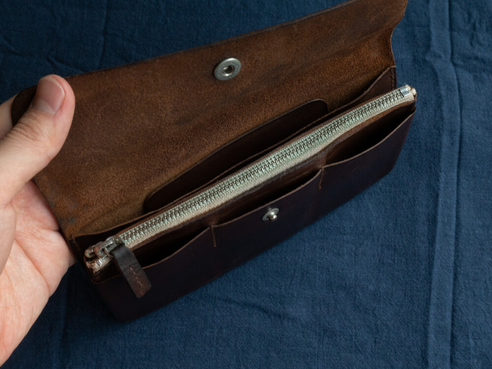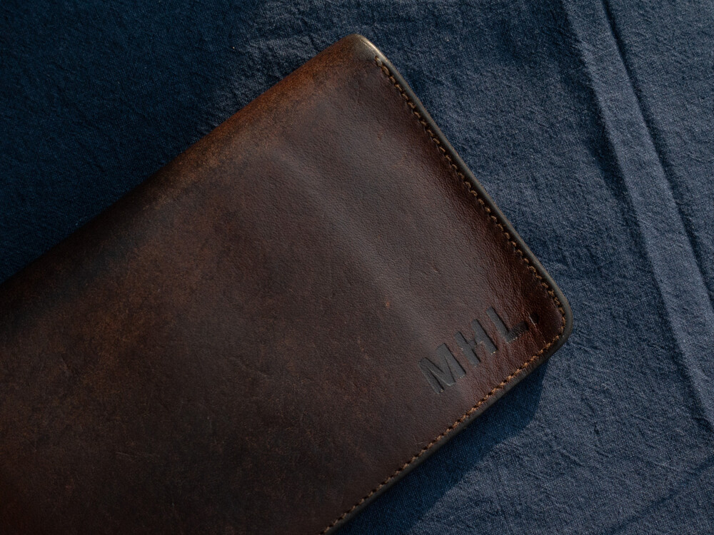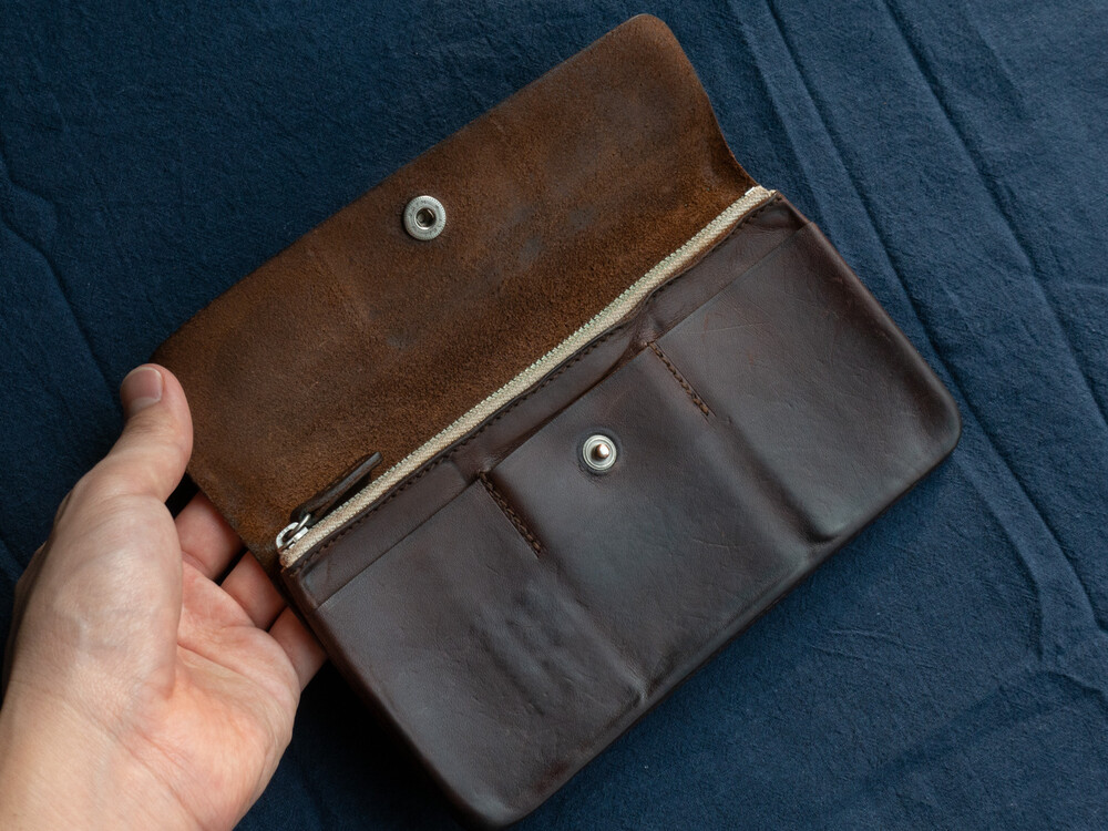 MHL. - TOUGH LEATHER POUCH WALLET, Long (Vintage Brown) *zipper
