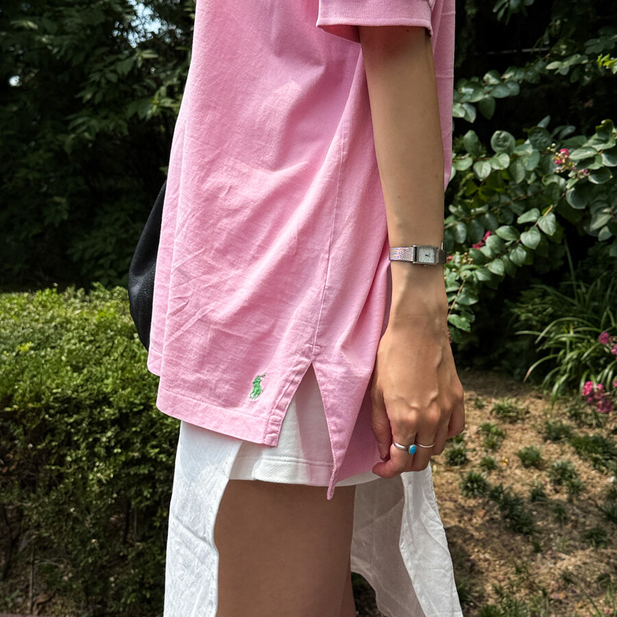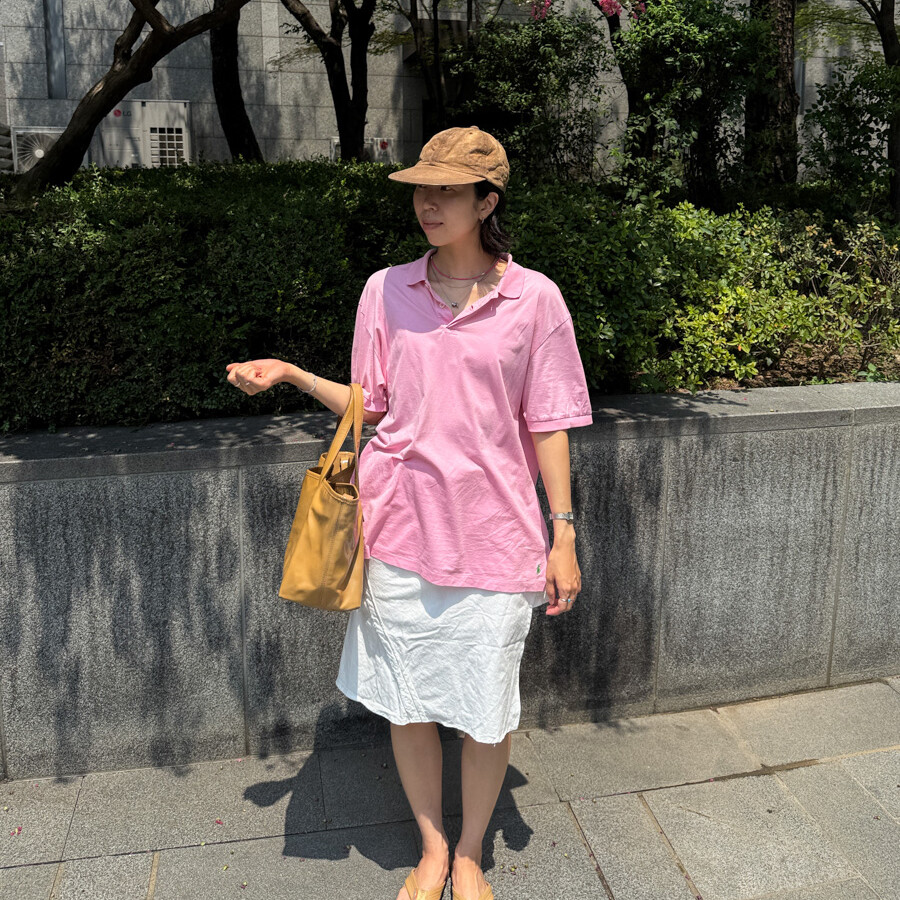 세월을 머금고 여러번 세탁되어 부드러워진 폴로셔츠는 여름에 입기에도 기분 좋습니다.