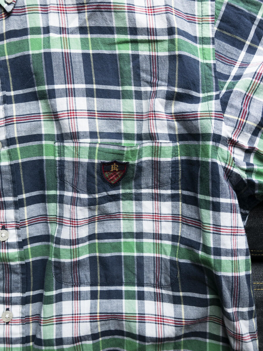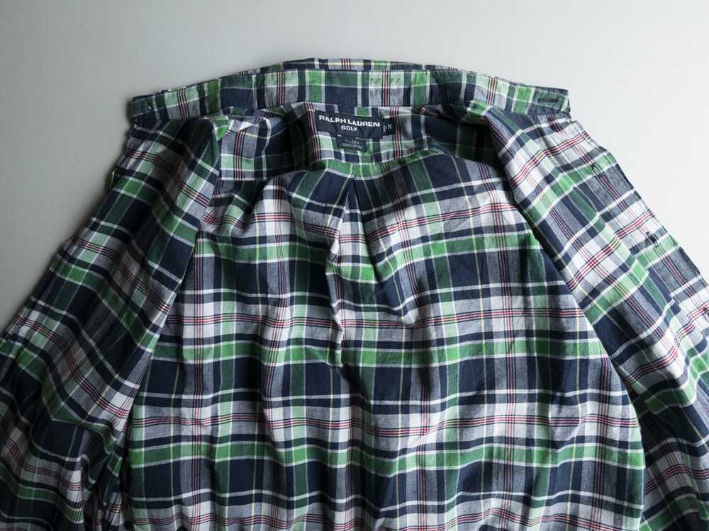 1990s POLO GOLF - Half Shirt (Green Madras Check) *TILDEN