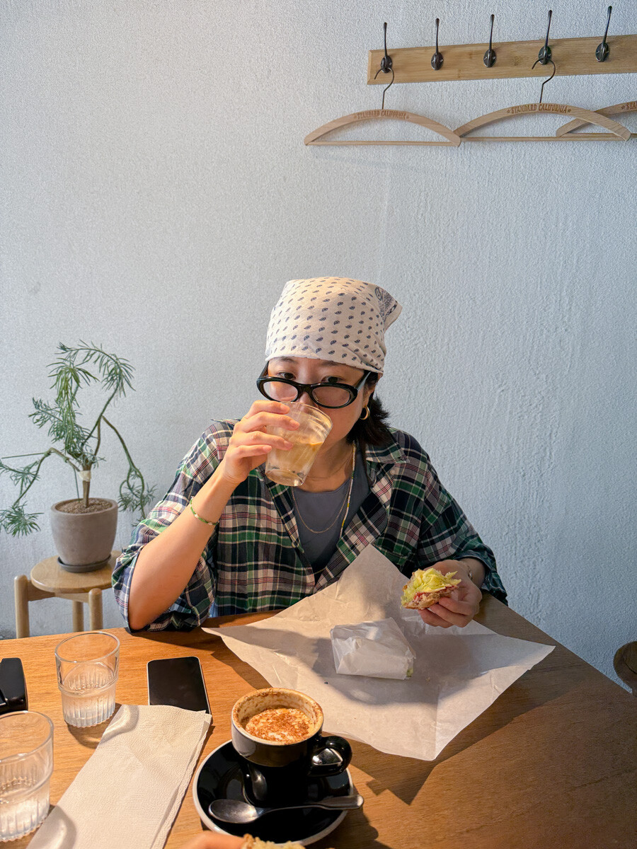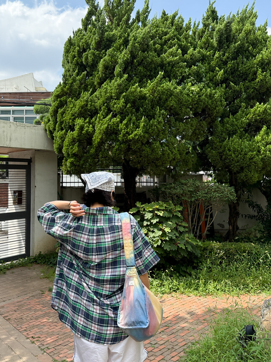 넉넉한 사이즈감, 원단이 얇고 청량한 질감이라 한여름에 입기에도 좋아요!
