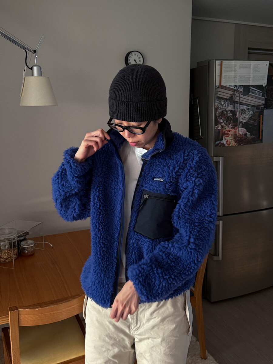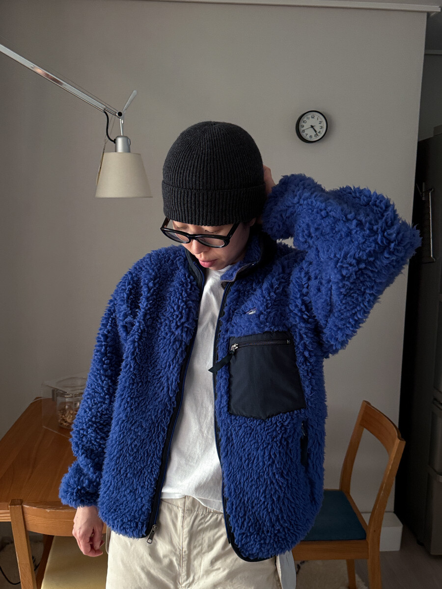 *rare 2000S PATAGONIA - Classic Retro X Deep Pile Cardigan (Royal Blue)