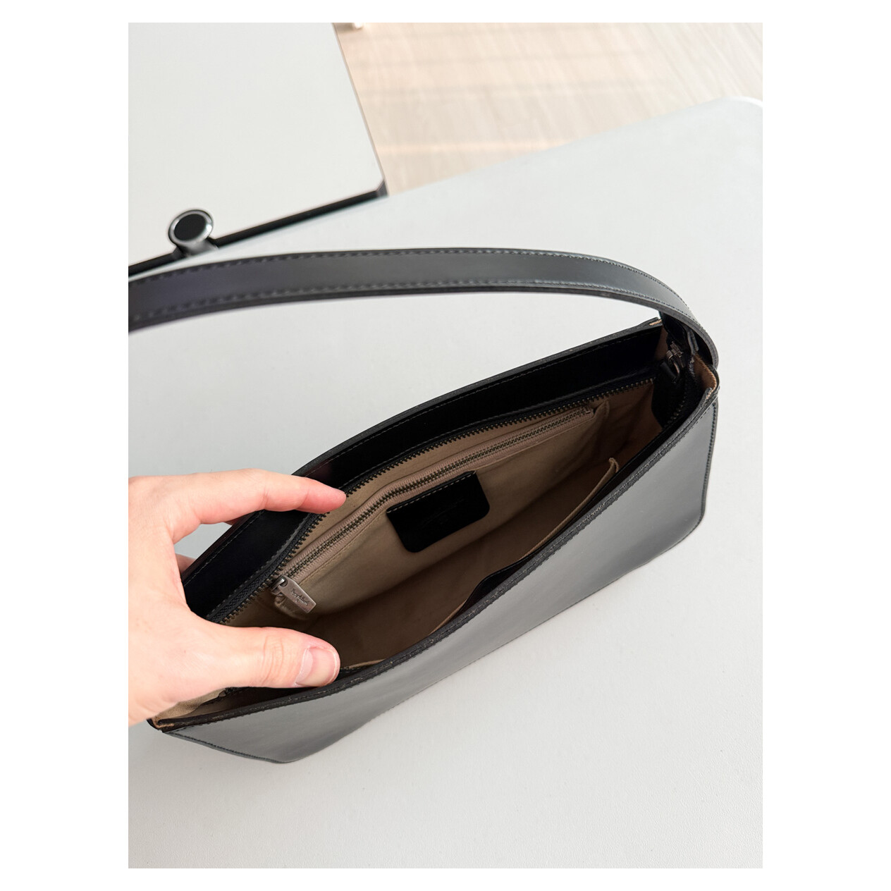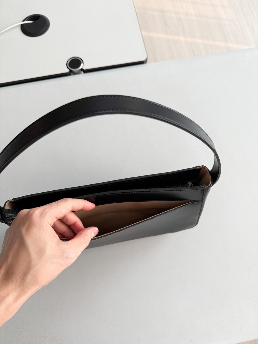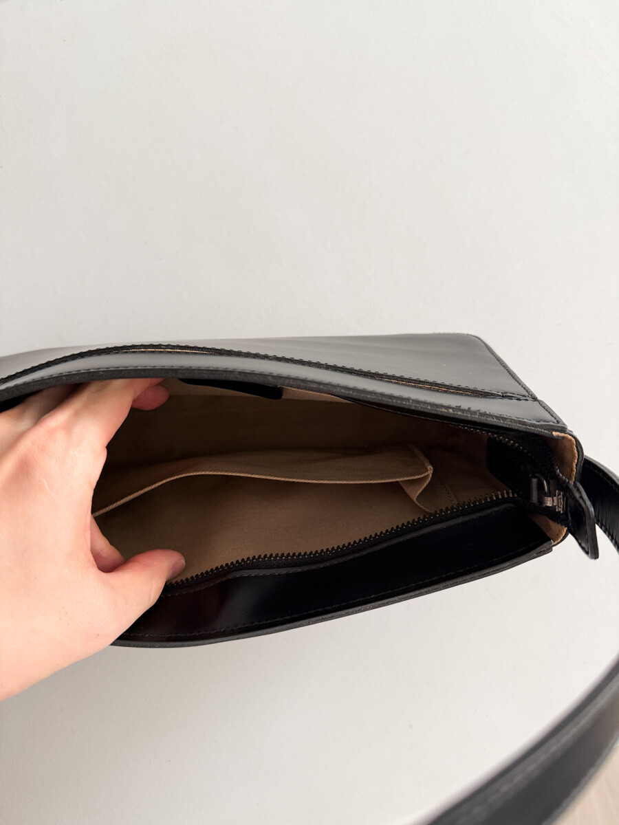 old MARGARET HOWELL - Mat Leather Hobo Bag (Black)