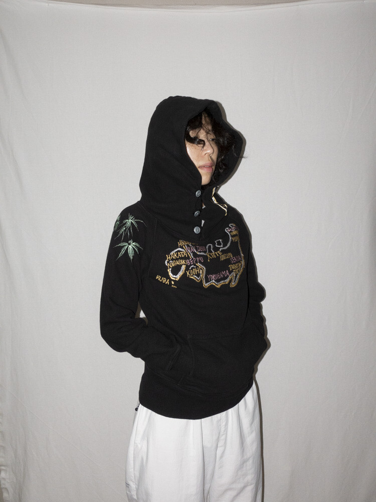 KAPITAL - SUKAJAN SOUVENIR JAPAN TOUR PULLOVER HOODIE (Natural Black)