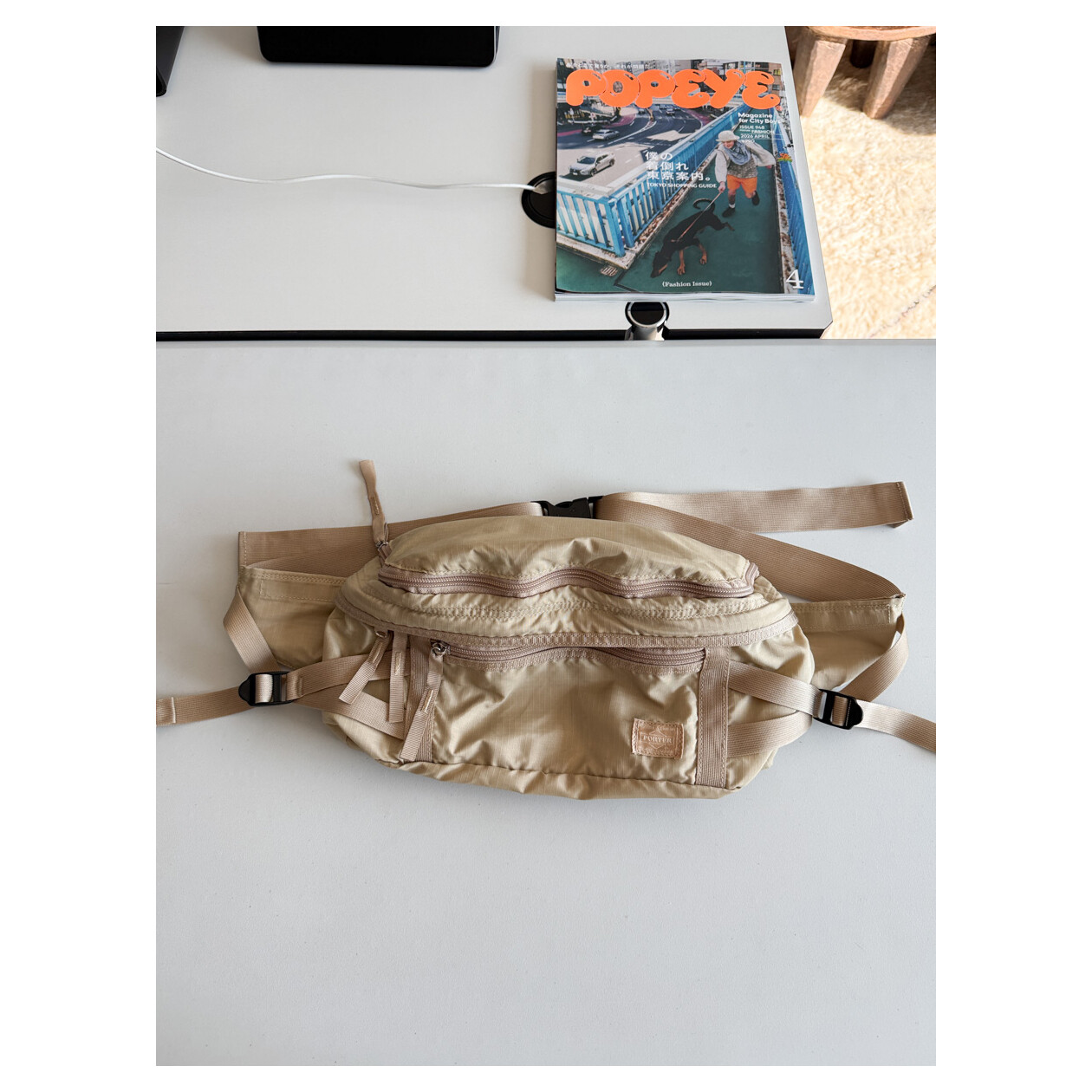 PORTER - POCKETABLE BAG (Waist Bag, Soft Beige)