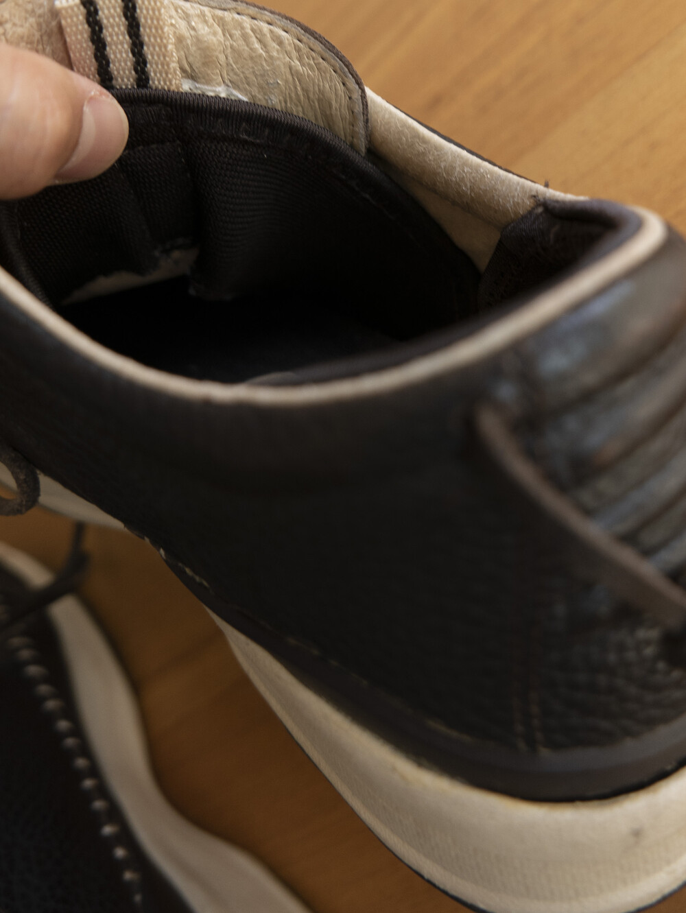 제화 특성과 착용에 의한 구부림, 세월의 흐름으로 본드 경화 & 탈락 등의 현상을 갖게 됩니다.
